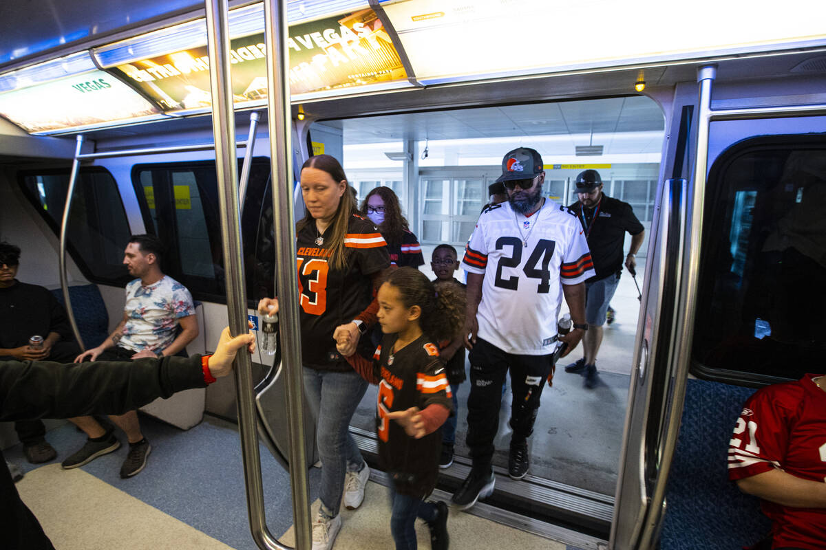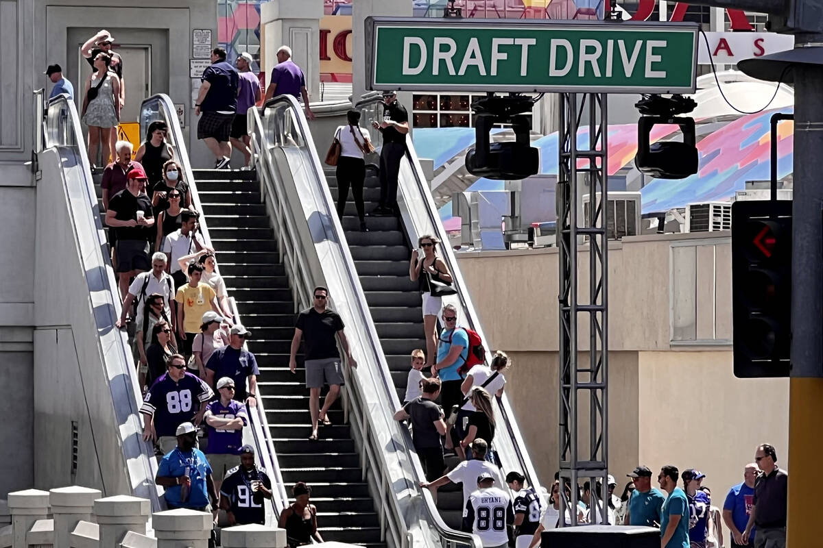 Festivities for the NFL Draft in Las Vegas began moments after travelers stepped off their plane at Harry Reid International Airport.