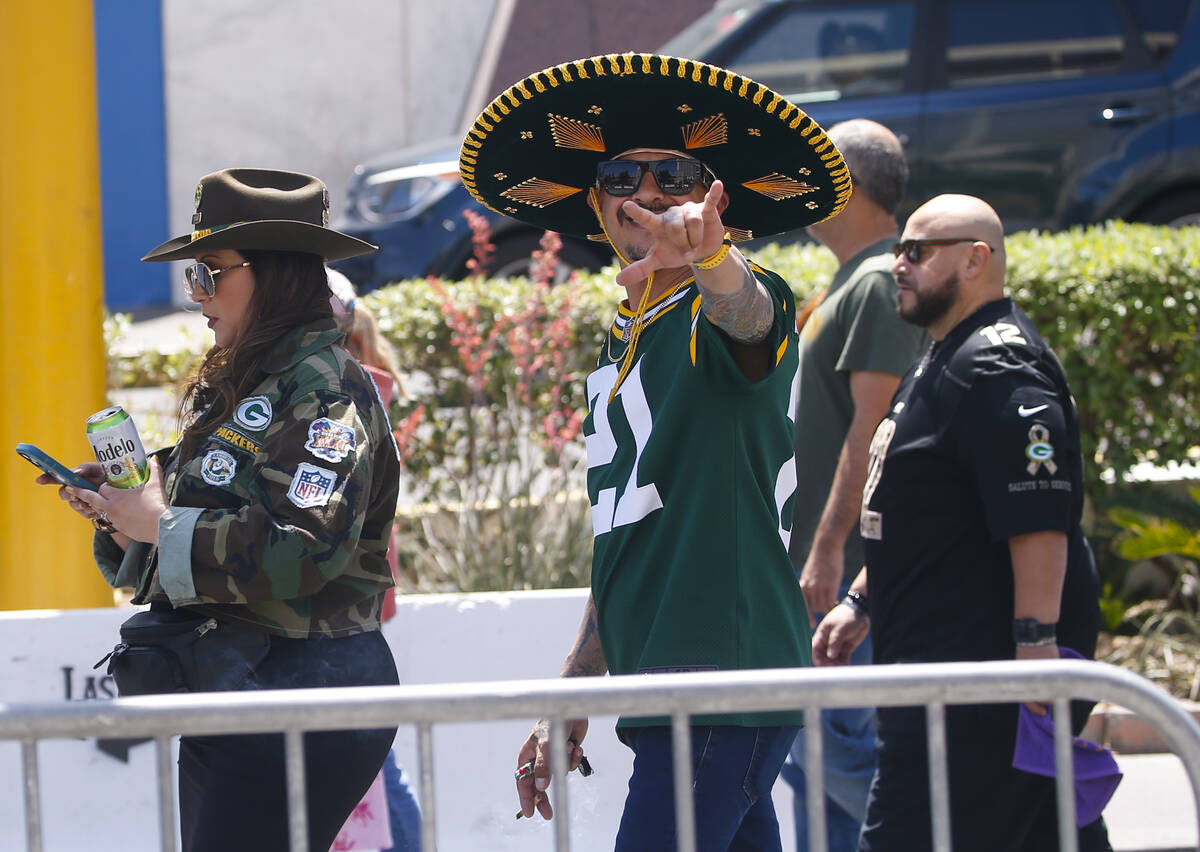 “The NFL is a huge community. It’s all about the people,” said Michael Klingenmeier, 50, of Las Vegas. “Competition aside, everybody gets along. They want to be out here. It’s a great day for everyone to have fun, no competition between teams, just enjoy it.”