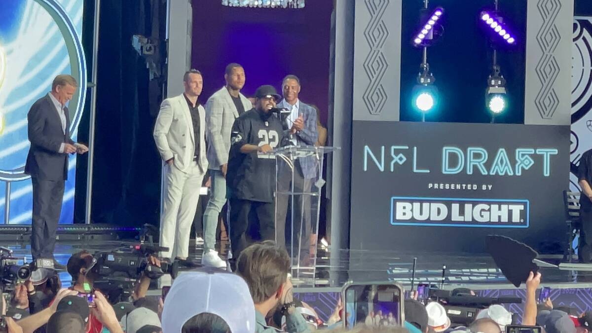 Raiders Derek Carr, Darren Waller and Raider legend Marcus Allen acted as unofficial draft hosts, with an assist from the Mayor of the Raider Nation, rapper Ice Cube.