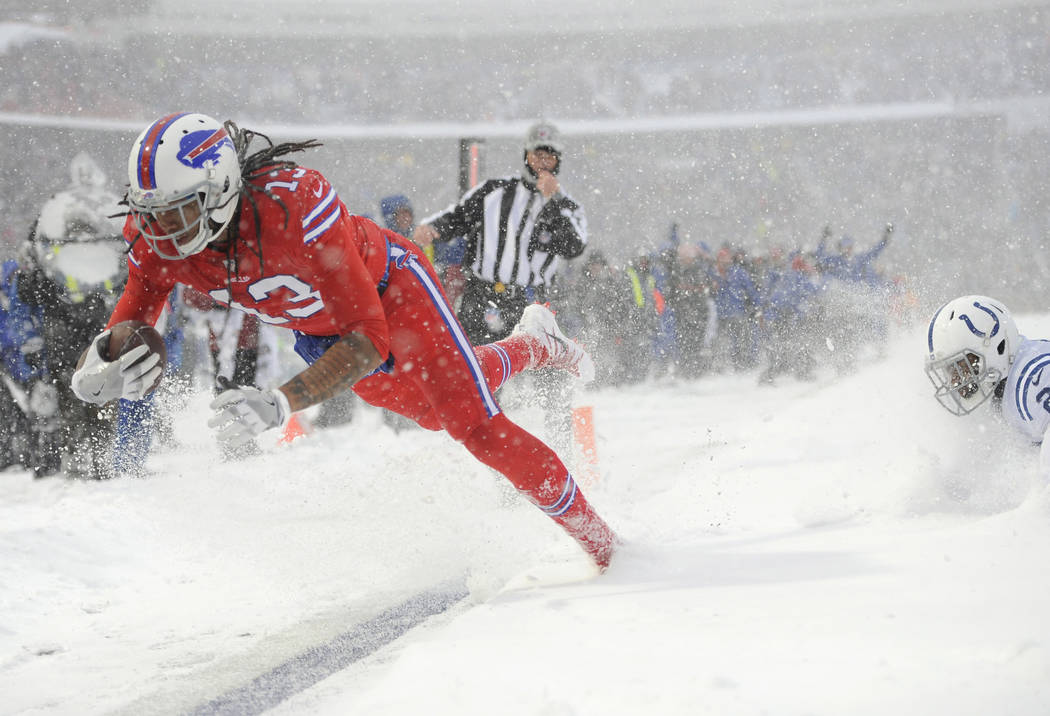 The Bills’ sideline erupted after McCoy’s touchdown, with numerous players running on to the field and either making snow angels or engaging in celebratory snowball fights.