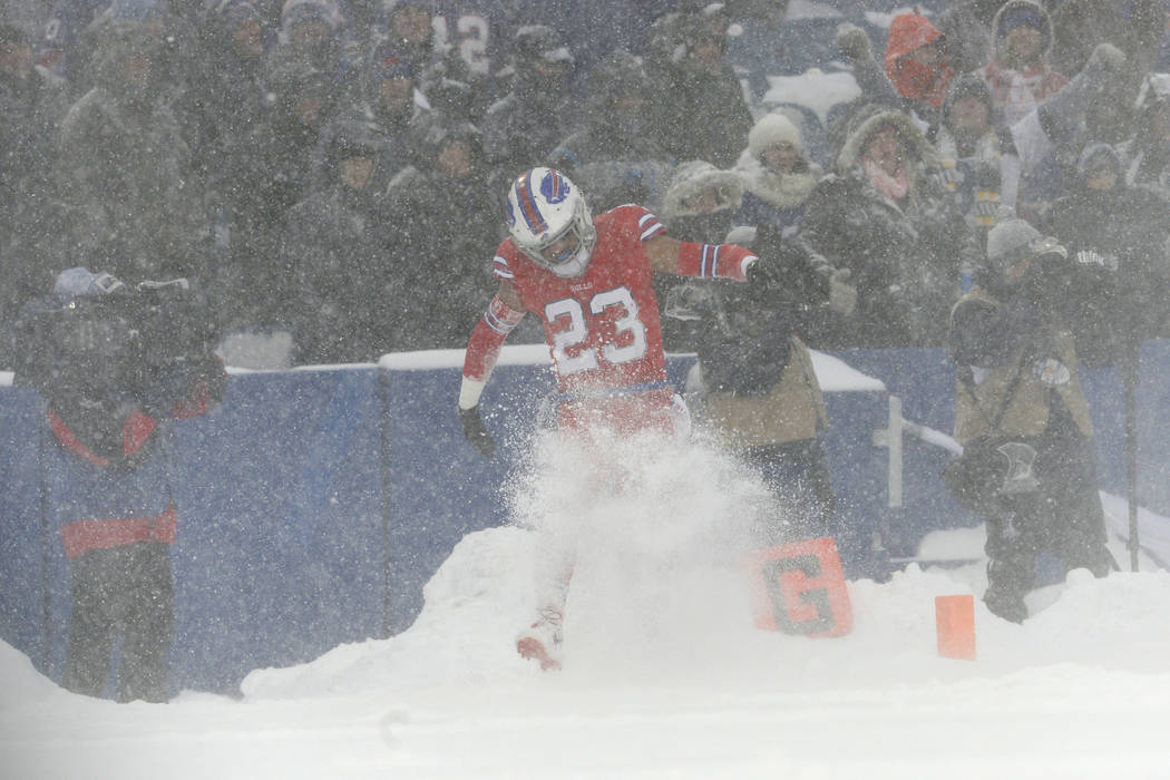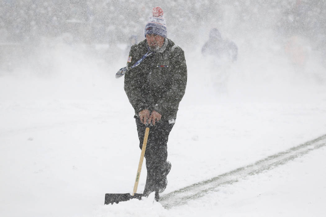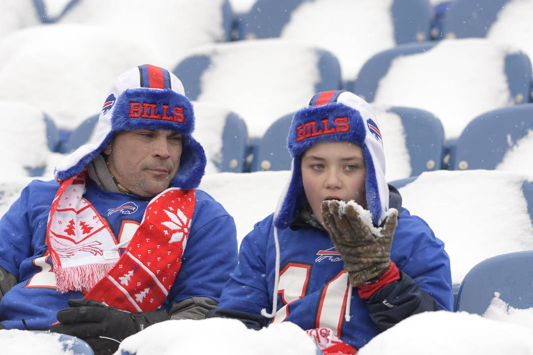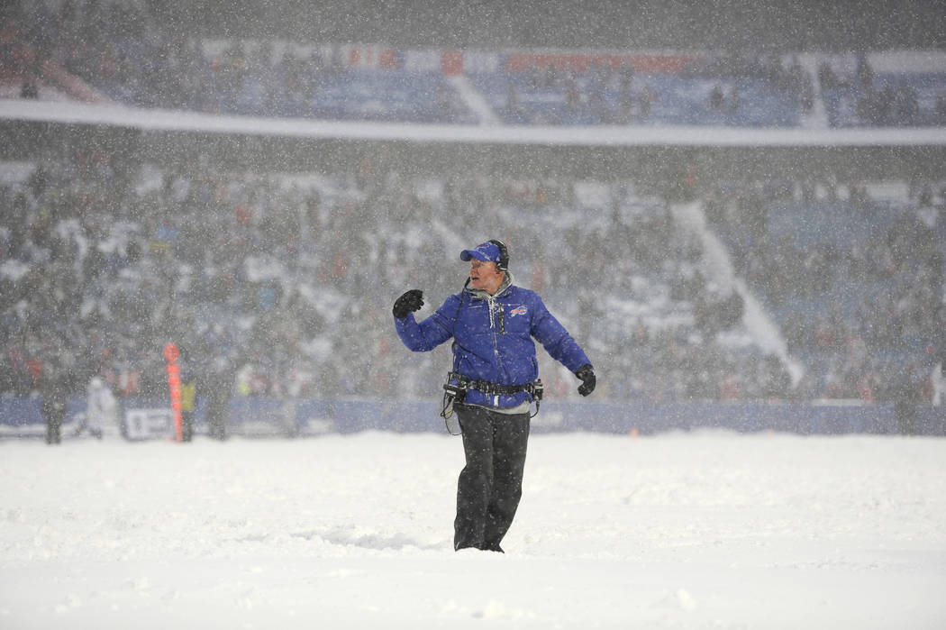 The game began in nearly white-out conditions with a major lake-effect storm blowing in off nearby Lake Erie. The snow fell so hard a half-hour before kickoff it was nearly impossible to see New Era Field’s west-end scoreboard from the east-end stands.