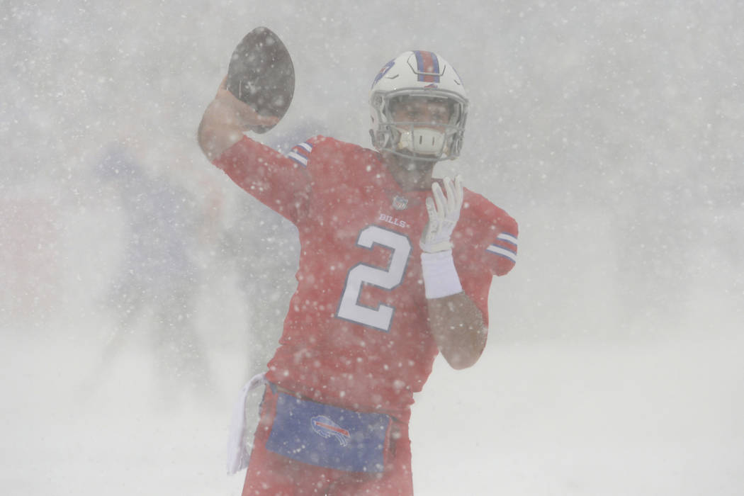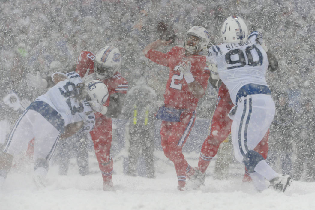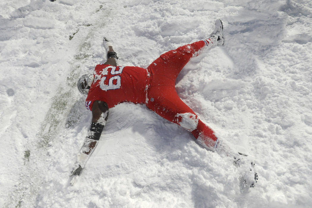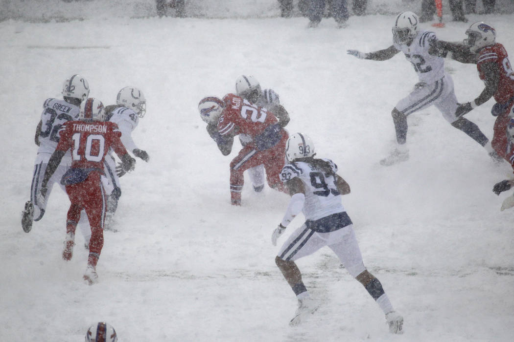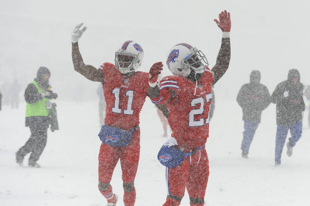 The game began in nearly white-out conditions with a major lake-effect storm blowing in off nearby Lake Erie. The snow fell so hard a half-hour before kickoff it was nearly impossible to see New Era Field’s west-end scoreboard from the east-end stands.
