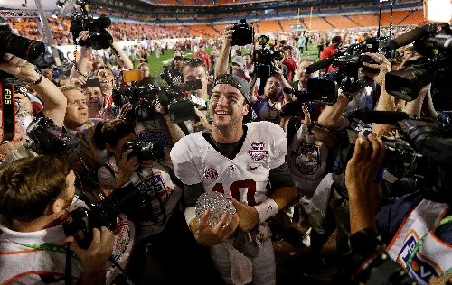 Lacy finished with 140 yards on 20 carries, coming up with two of his best performances in the two biggest games of the year. He rushed for a career-high 181 yards in a thrilling victory over Georgia in the SEC title game, and was nearly as dominant against the Irish (12-1). McCarron wasn't too shabby, either, completing 20 of 28 passes for four touchdowns and 264 yards, adding another dazzling effort on top of being MVP in last year's title game.