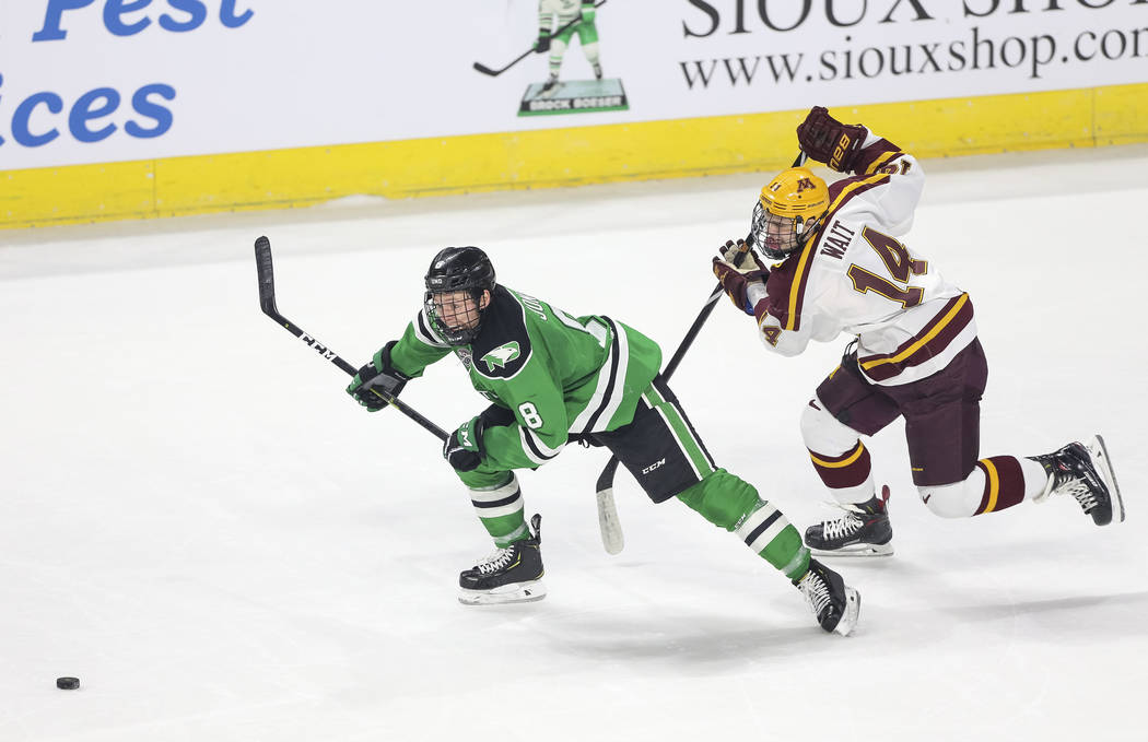 Minnesota pressured the Fighting Hawks in the second and third periods, but North Dakota’s defense stood tall against a powerful offense, holding the Gophers to 21 shots.
