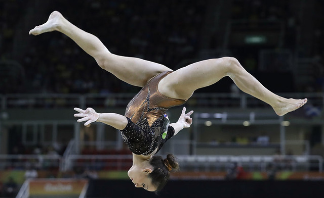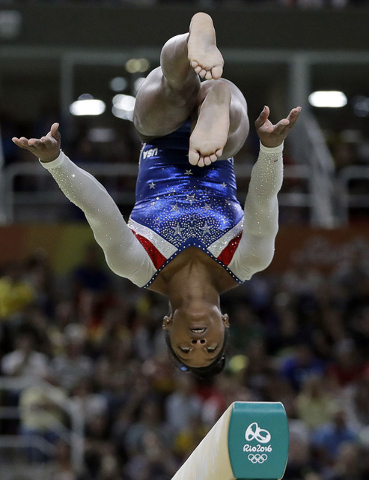 Sauntering to the sounds of Latin music befitting the beaches and boulevards of Rio de Janeiro, Biles soared to the women’s all-around gymnastics title.