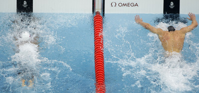 The scoreboard posted Phelps' time as a hundredth of a second ahead of Serbian Milo Cavic, but the swimmers had barely turned to read the results when debate began swirling around the Water Cube.