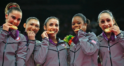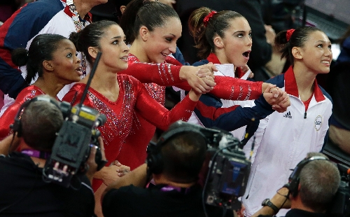 The Americans lived up to their considerable hype and then some Tuesday night, routing silver medalist Russia and everybody else on the way to their first Olympic title in women's gymnastics since 1996. Their score of 183.596 was a whopping five points better than Russia's and set off a debate over whether this is the best U.S. team of all time. Romania won the bronze.
