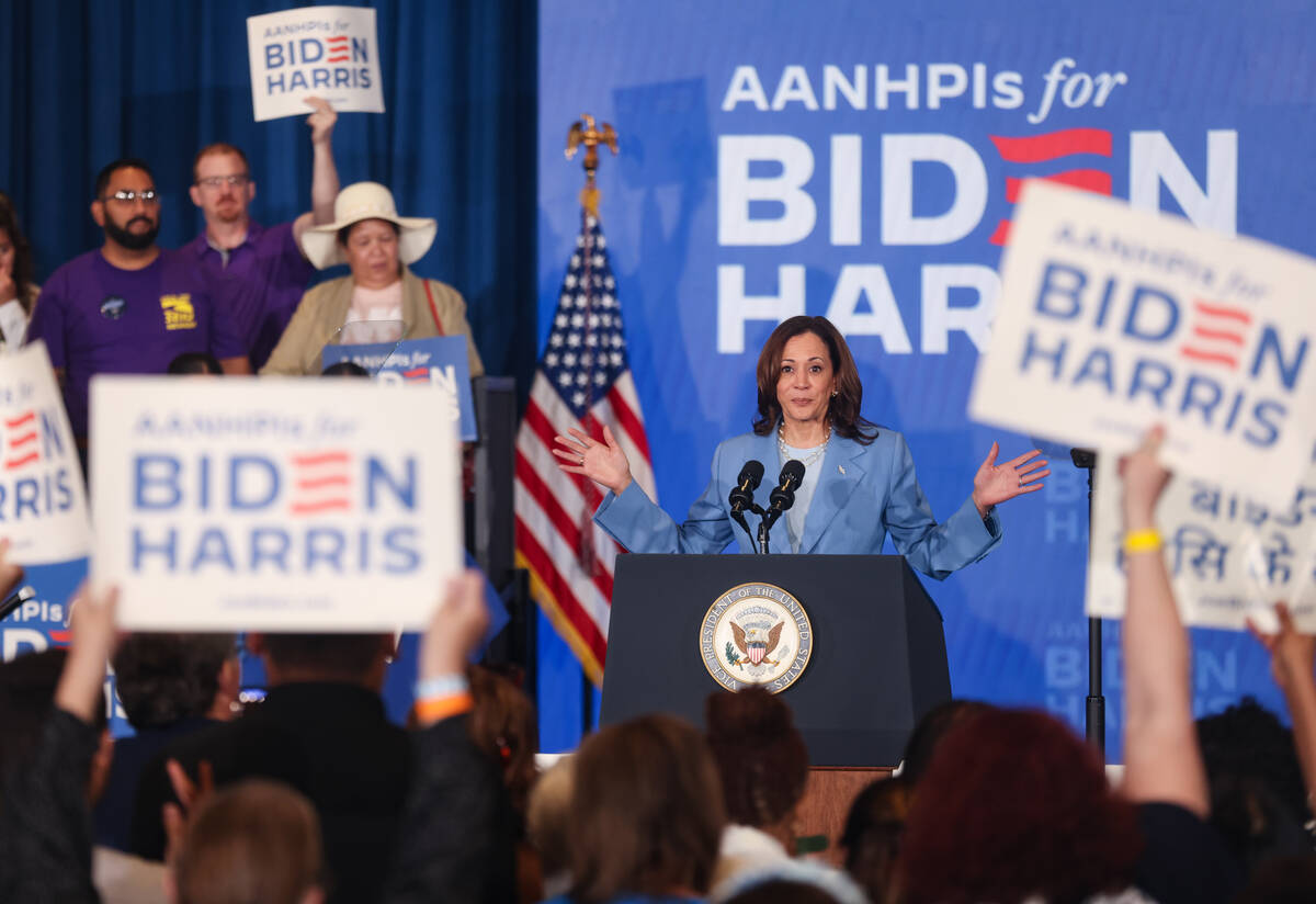 Harris was in Las Vegas to speak at an Asian American, Native Hawaiian and Pacific Islander festival and stopped in to visit the Olympians around 1:23 p.m.