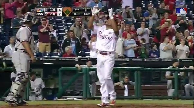 It took 1,467 at-bats but Phillies center fielder Ben Revere finally hit a home run.