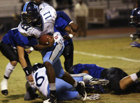 Canyon Springs (3-1, 2-0 Northeast League) set the tone on the opening kickoff, forcing a fumble that was scooped up by Jamaal King, who returned it 16 yards for a touchdown as the Pioneers took a 7-0 lead eight seconds into the game.