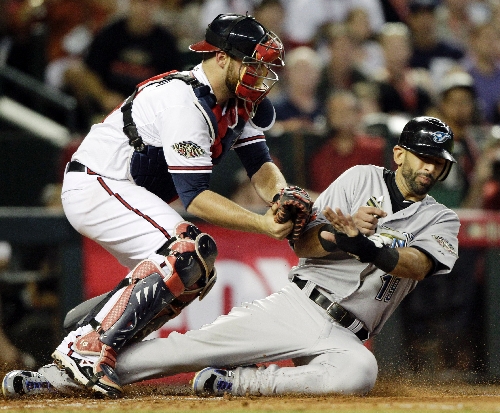 Jose Bautista singled on a popup behind first that Fielder dropped and advanced on Josh Hamilton's broken-bat single before Beltre singled sharply to left. Hunter Pence, who entered at the start of the inning, threw a strike to catcher Brian McCann well in time for the tag. With baseball still smarting from the season-ending injury to Buster Posey when Scott Cousins crashed into him in May, Bautista slid late to avoid a collision that would have brought up memories of Pete Rose's takeout of Ray Fosse in the 1970 All-Star game.