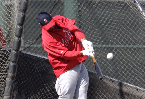 With Moreno, trainers, coaches and instructors watching, Pujols ripped a few fastballs from hitting coach Mickey Hatcher for line drives, then launched a deep shot over the fence in left, the ball slicing between two giant palm trees and disappearing into the brush.