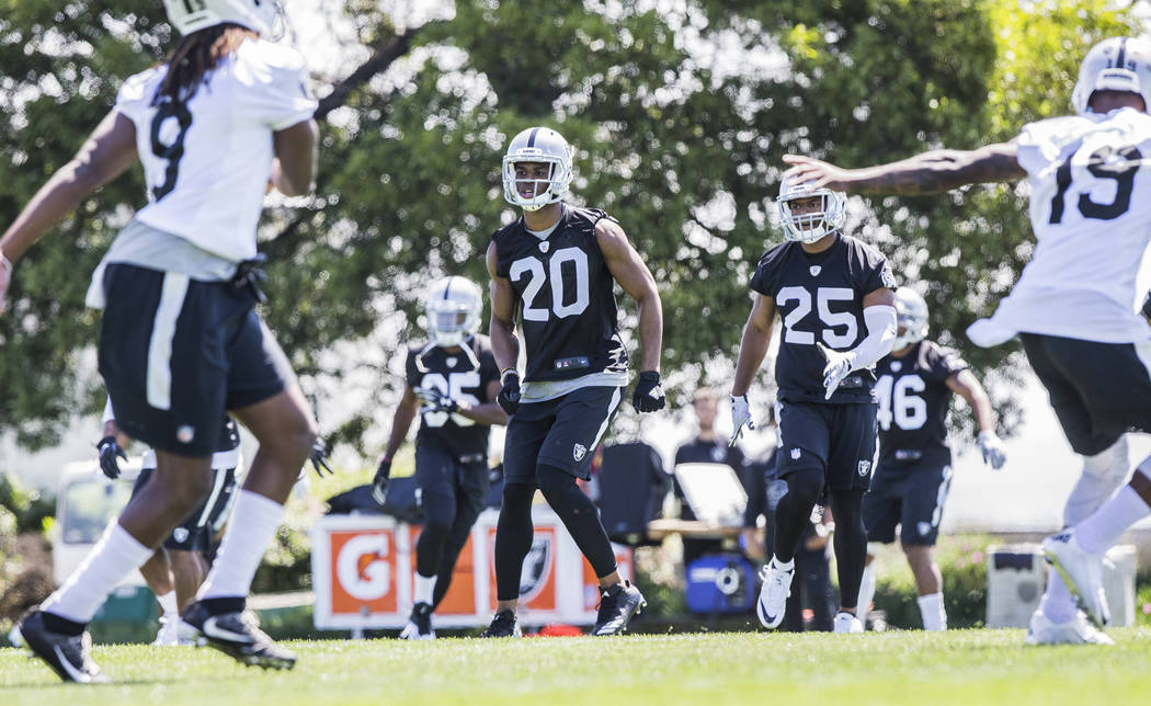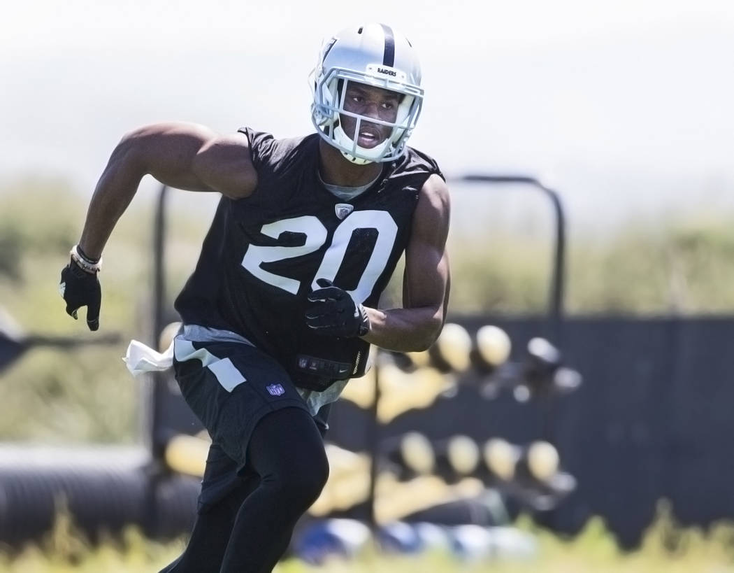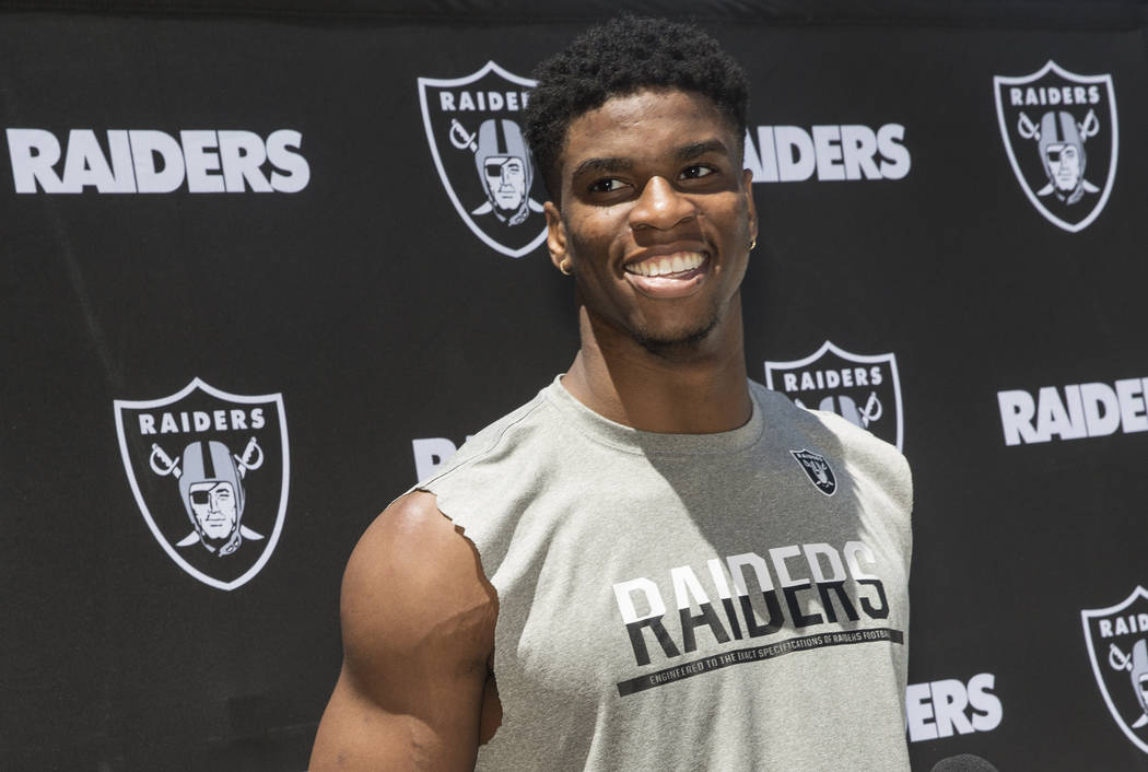 The Raiders opened rookie minicamp Friday, and the team’s first-round draft pick out of Ohio State found himself playing inside and outside from his cornerback spot, removed for a time from the dark cloud that hovers over his entrance into the NFL.