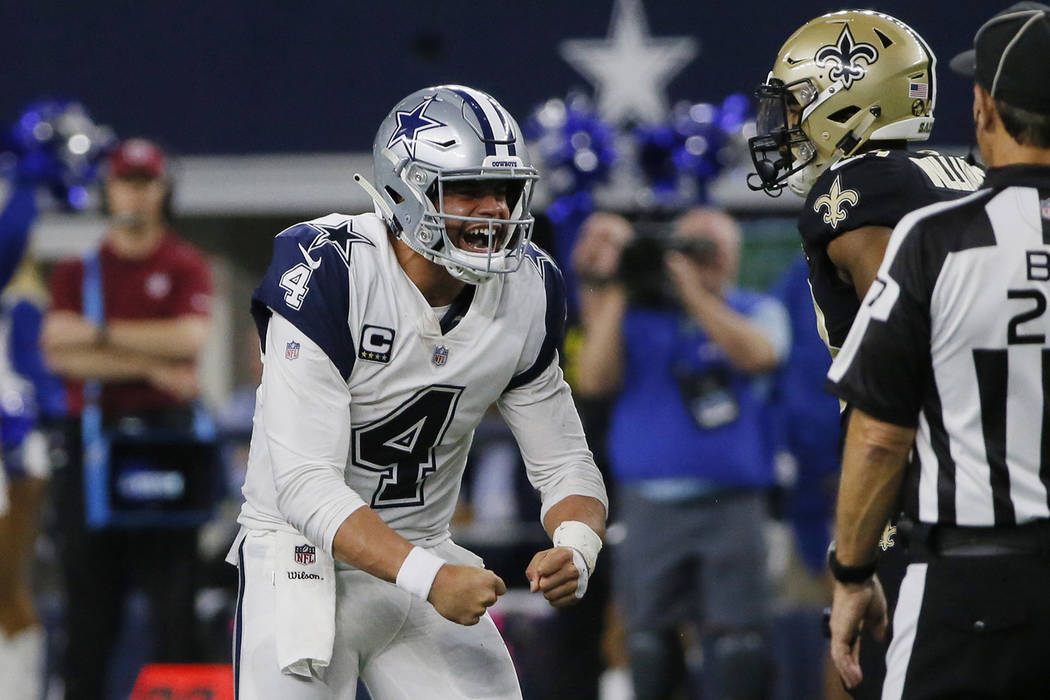 ARLINGTON, Texas — Dak Prescott desperately scrambled for a first down in a game of fourth-quarter keepaway, then took three knees from the New Orleans 1 to run out the clock by the narrowest possible margin.