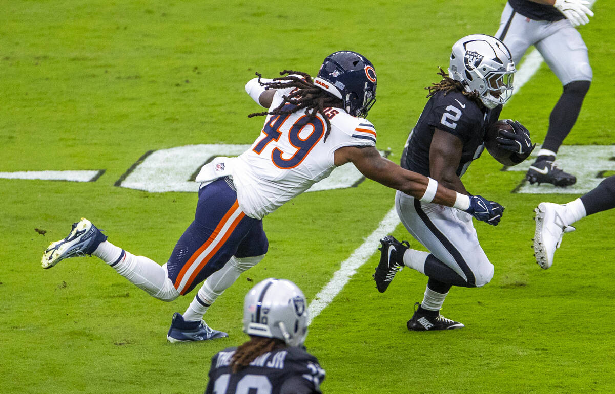 His energy was infectious. The Raiders defense started three first-half drives inside their own 25-yard line after a turnover from the offense, but held the Bears to a field goal all three times.