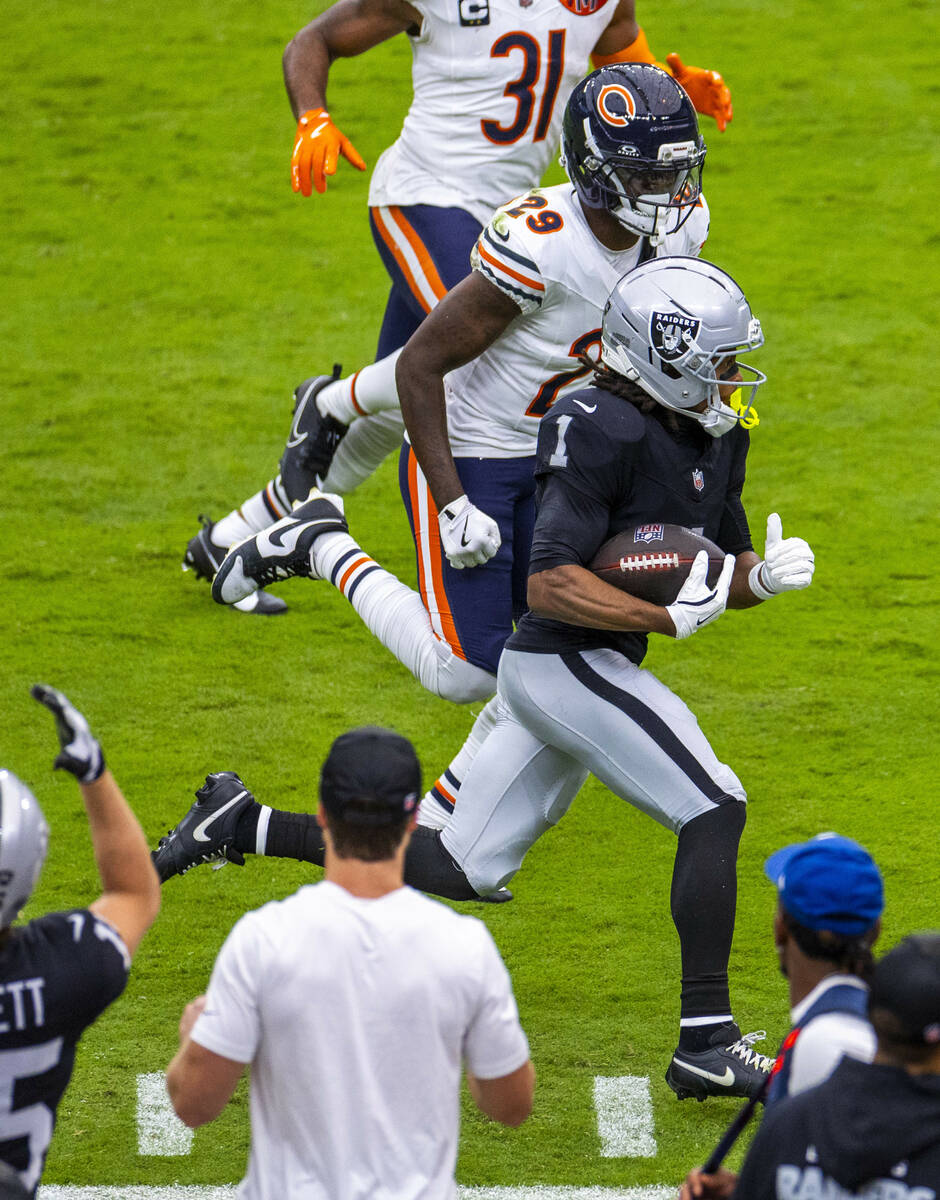The 21-year-old looked sensational while setting a career high in rushing yards. His 64-yard touchdown run in the second quarter that put his team up 14-6 was electric. His one blemish was a fumble in the first quarter when he was stuffed on a fourth-and-1 from the Raiders’ 35-yard line.