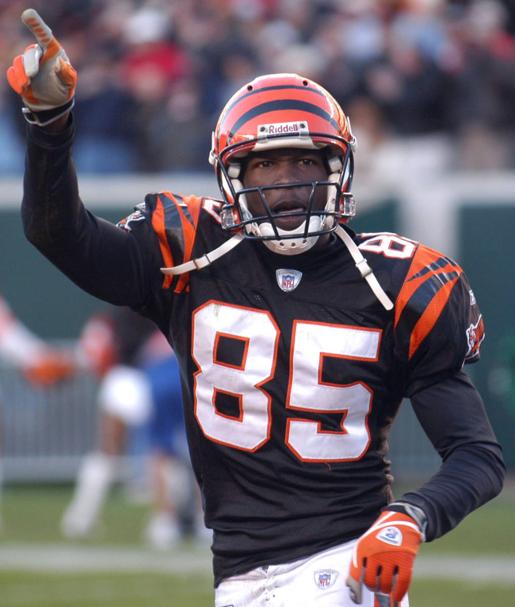 Wearing a Raiders helmet, black shorts and a black T-shirt, former NFL wide receiver Chad Johnson lined up as if ready for the ball to be snapped.