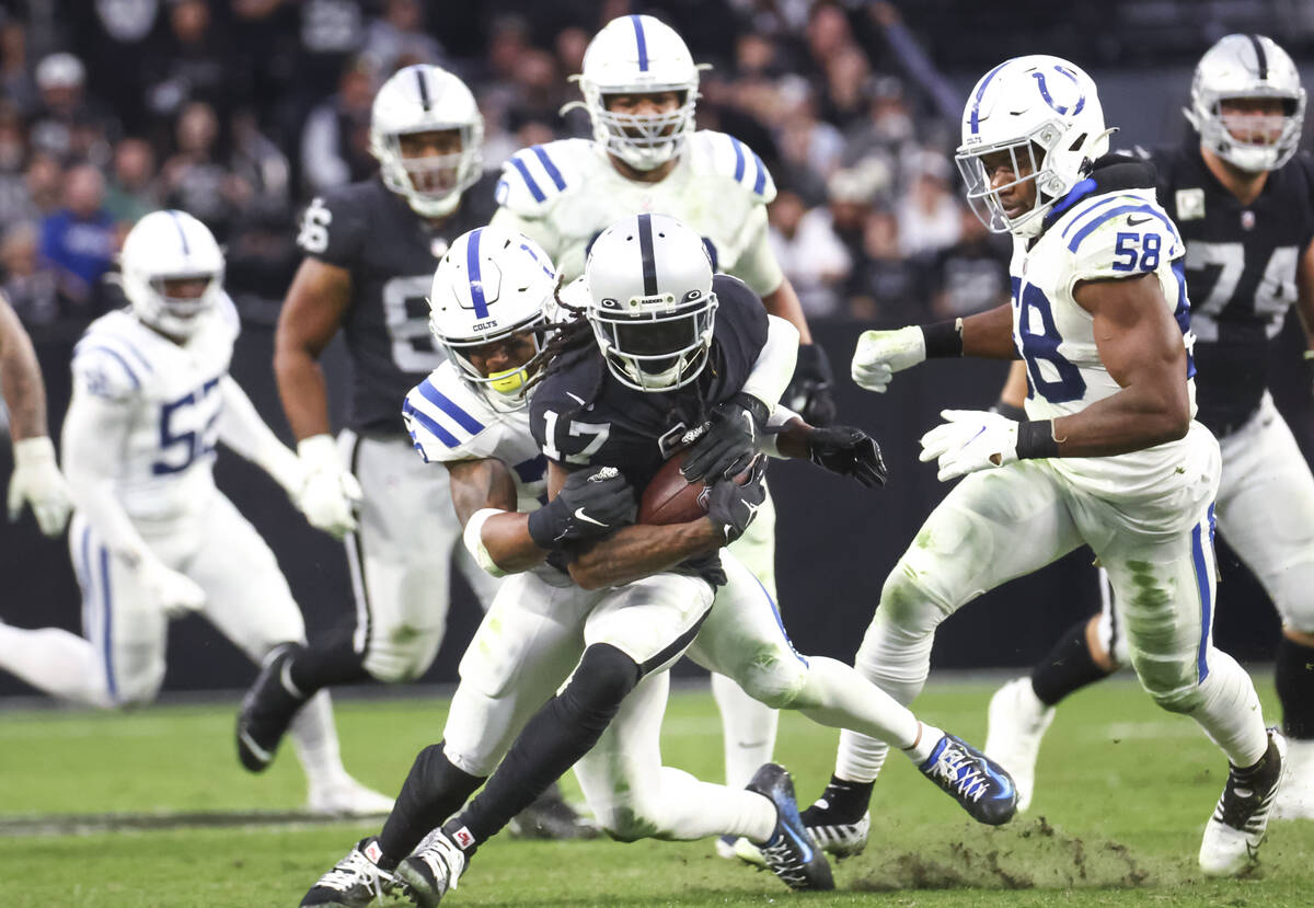 Raiders wide receiver Davante Adams was frustrated after a 25-20 loss to the Indianapolis Colts on Sunday at Allegiant Stadium.