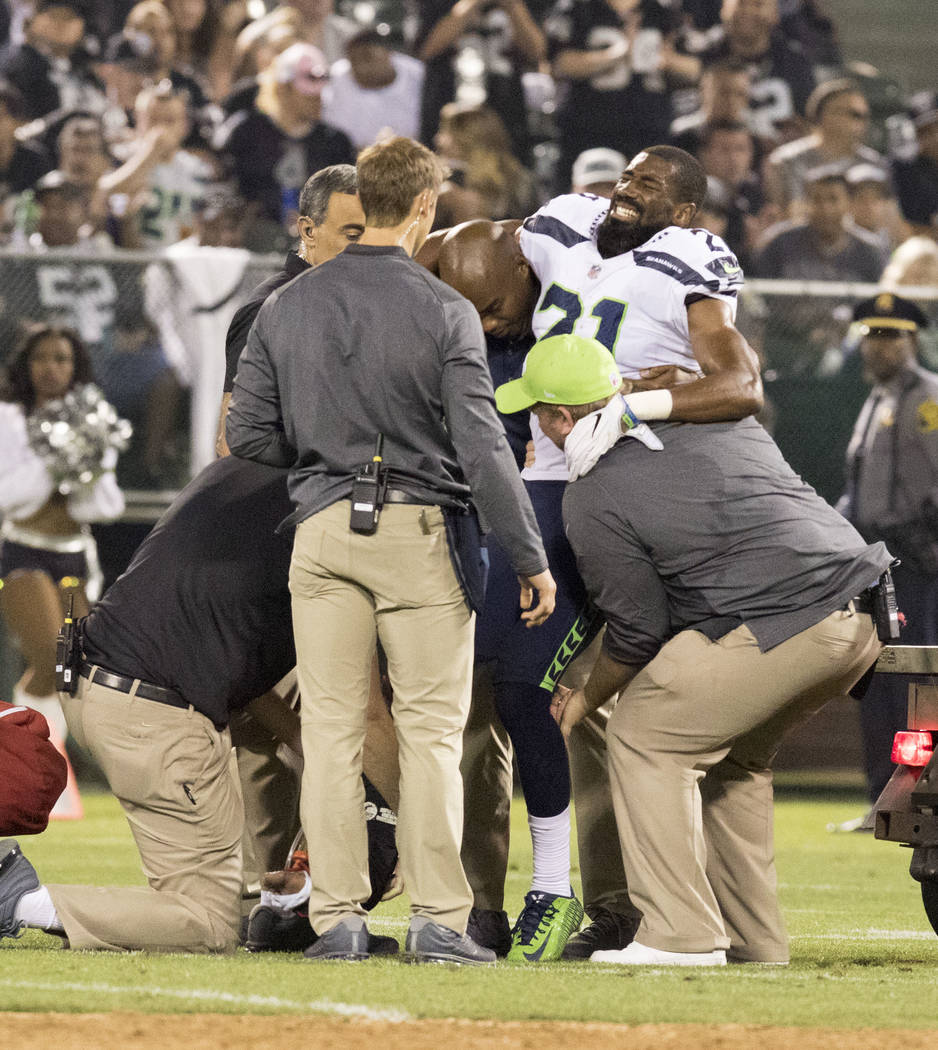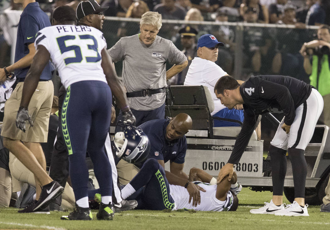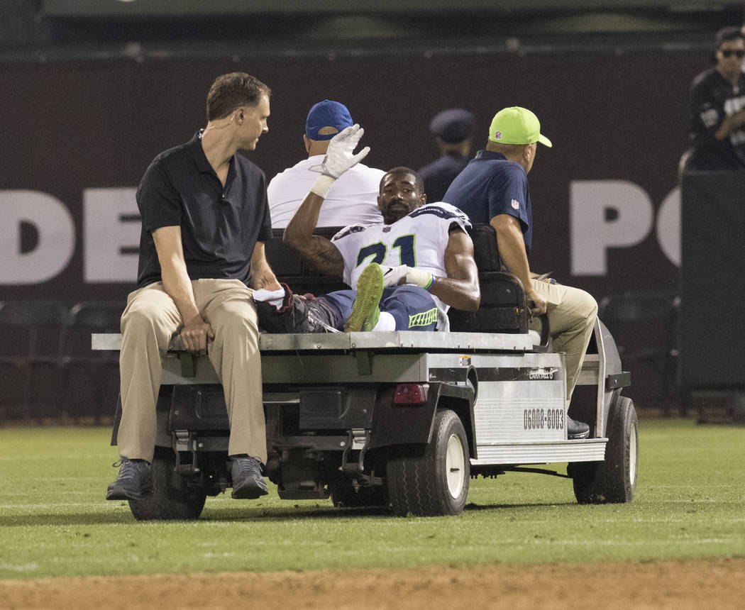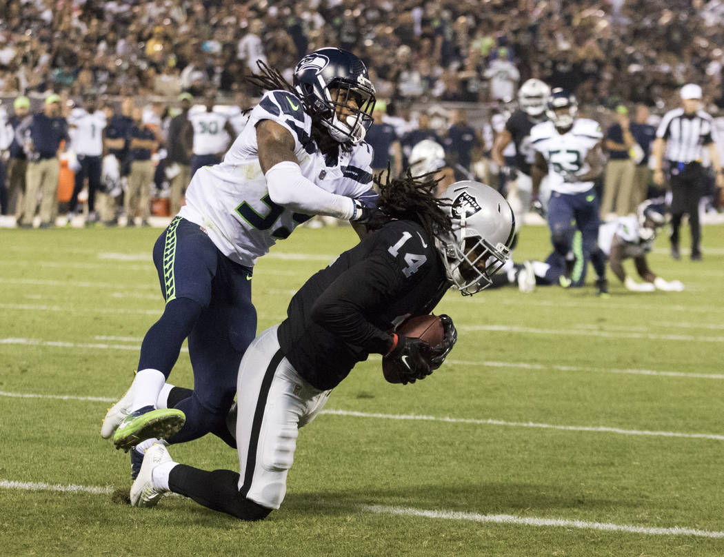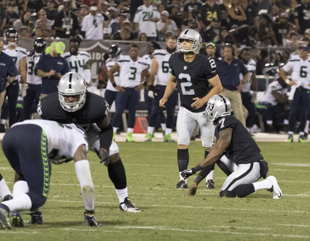 Running back George Atkinson III attempted to catch the opening kickoff. And he muffed it. The botched return forced the Raiders to start the evening at their own 11-yard line. Two plays later, running back John Crockett took a carry to the left side. And he fumbled it, setting up an easy Seattle Seahawks field goal.
