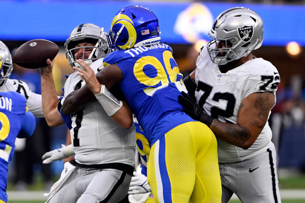 The Raiders’ defense forced five Rams punts through the first three quarters and didn’t allow a touchdown until under two minutes remained in the third.