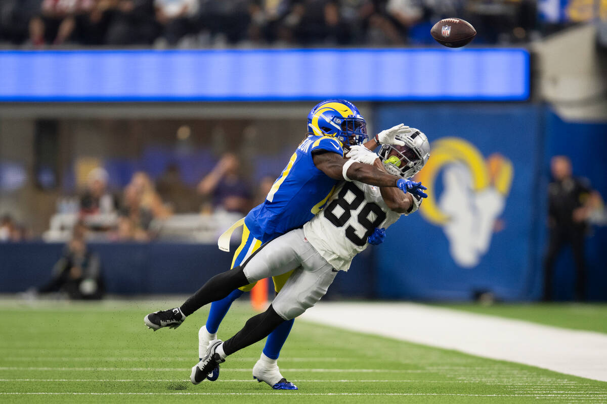 The throw to Sims came on a third-and-7 play in which O’Connell threw the ball over the shoulder of Rams cornerback Tyon Davis. The play was initially ruled incomplete, but was overturned to a touchdown after the Raiders challenged the call.