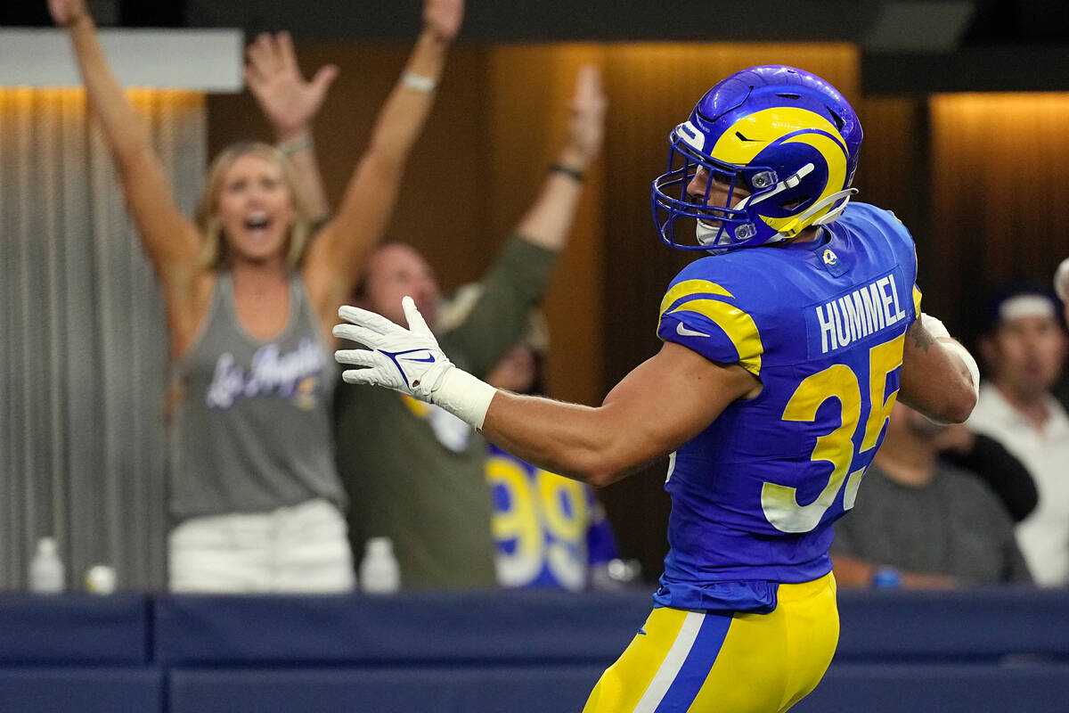 Hoyer underthrew a wide-open Mayer on what would have been a big gain, and Rams linebacker Jacob Hummel made the interception and returned it for a 21-yard touchdown to tie the game at 10 in the second quarter.
