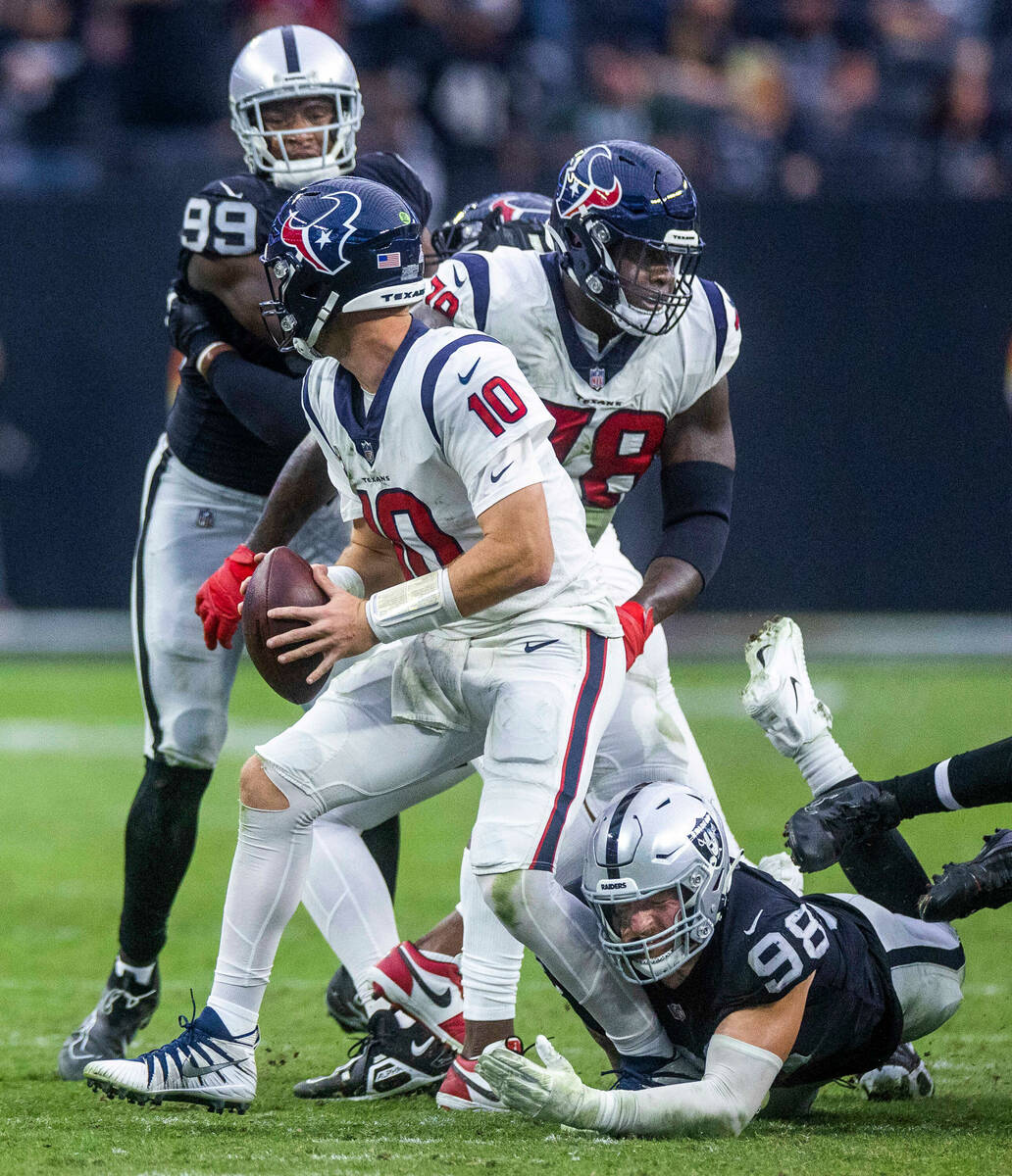 Maxx Crosby made several big plays in the fourth quarter to help seal the Raiders’ 38-20 victory over the Texans on Sunday at Allegiant Stadium.