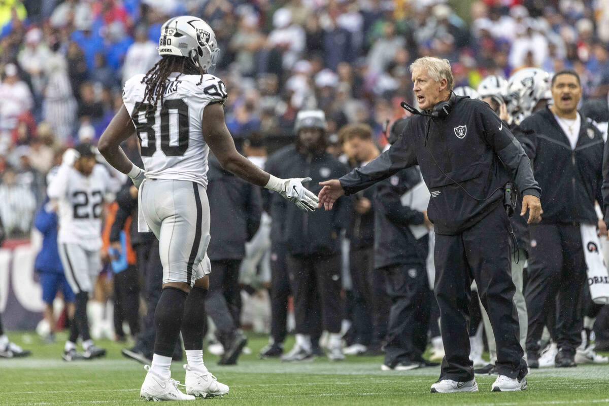 Second-year tight end Brock Bowers, after a record-setting rookie season, has also been slowed by a knee injury he suffered in Week 1. The offense should improve once he gets closer to full strength.