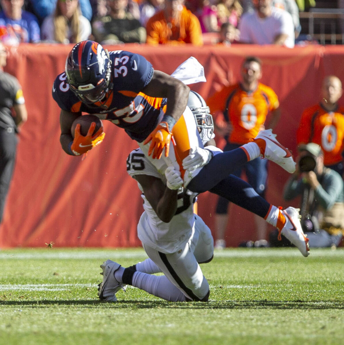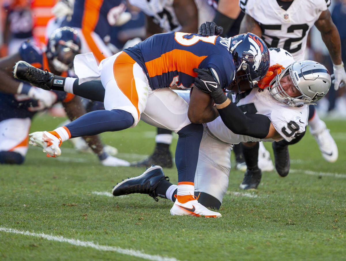 The forced fumble came on a hustle play by defensive tackle Solomon Thomas, who chased down Broncos QB Teddy Bridgewater and punched the ball loose. The Raiders also got interceptions from Brandon Facyson, Tre’von Moehrig and Johnathan Abram.