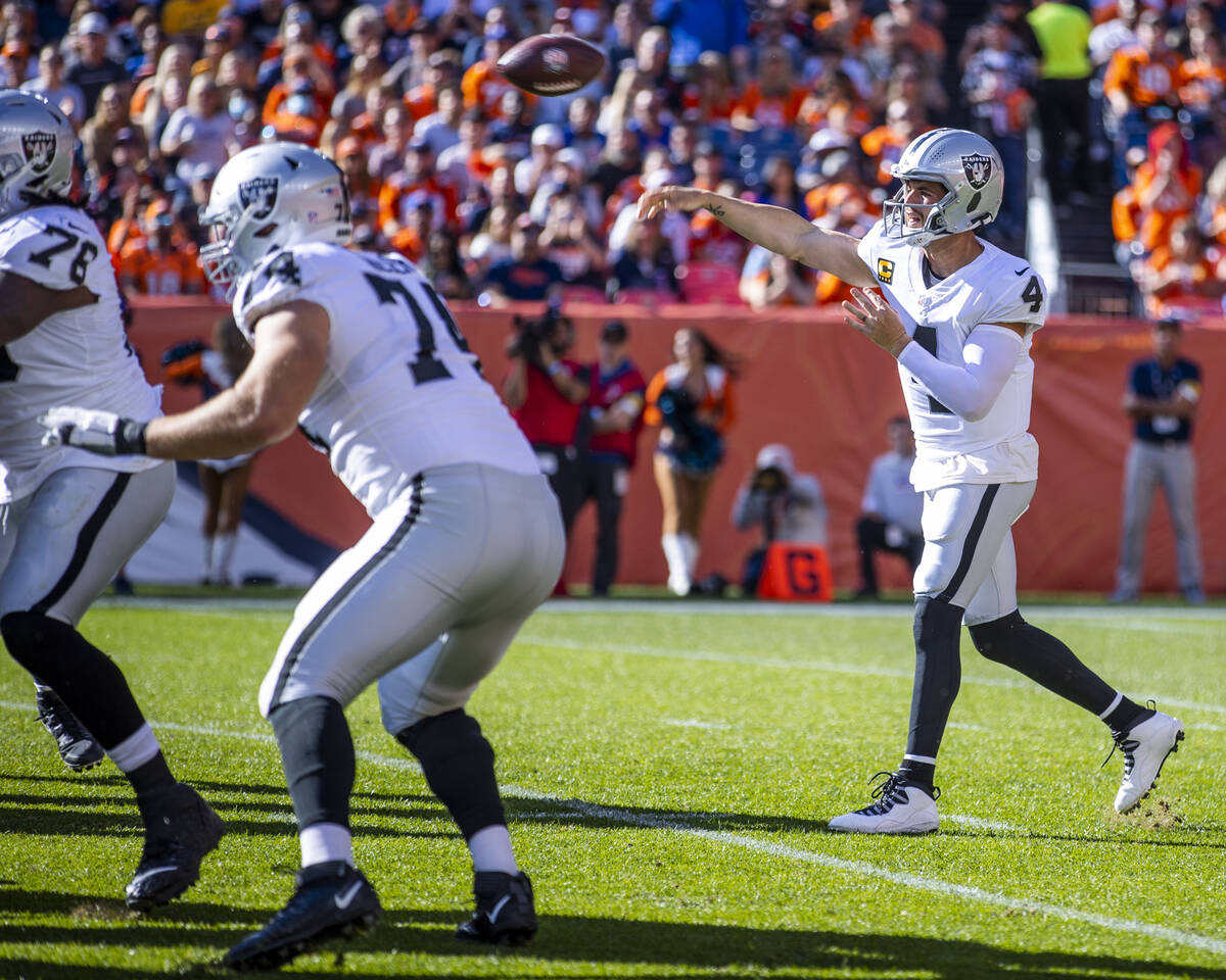 That was evident on the Raiders’ opening drive when they got just enough of a push up front to create a run game and then, when the Broncos leaned in closer to stop it, Carr pushed a long ball to Henry Ruggs for a 48-yard touchdown.