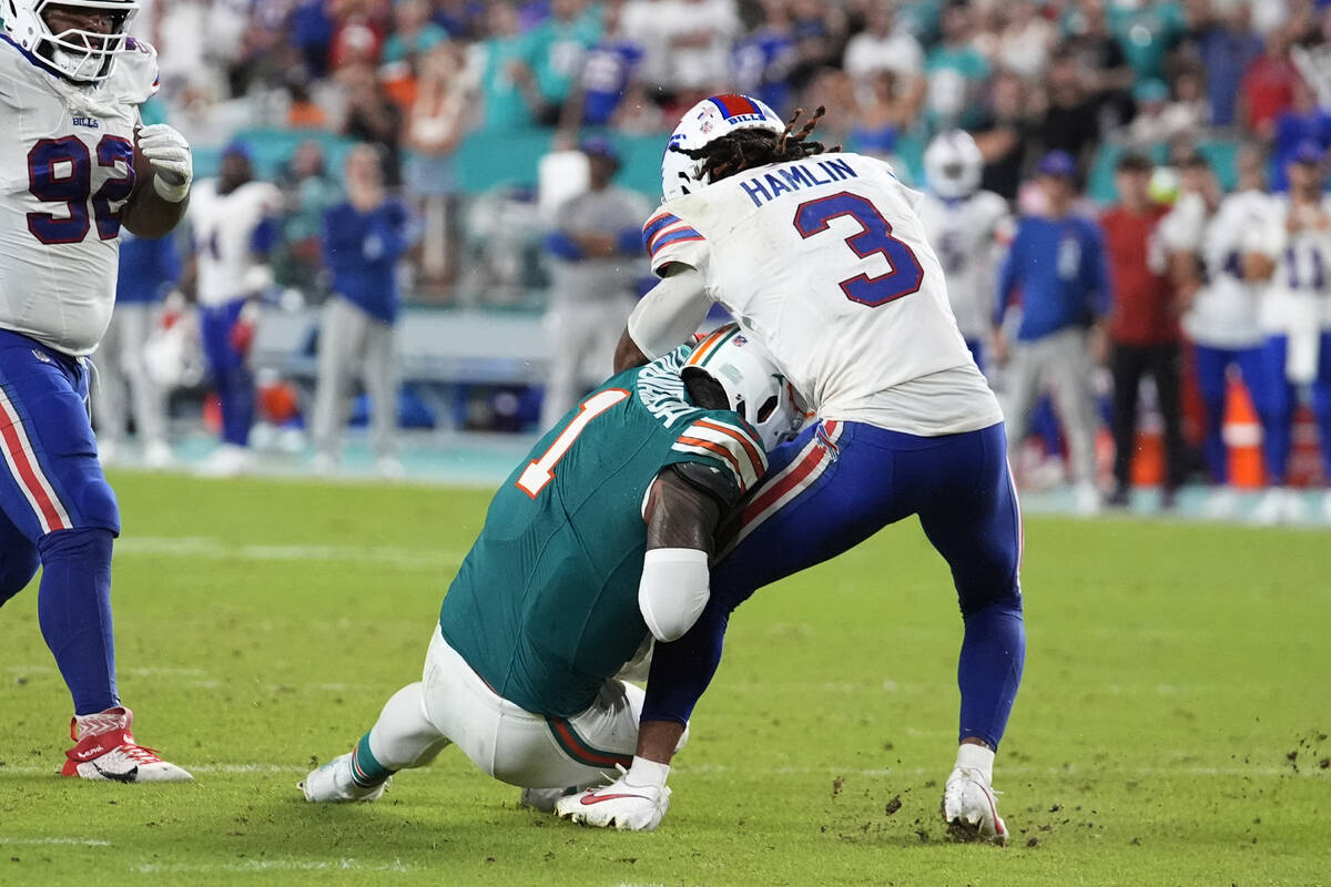 His head contacted Buffalo safety Damar Hamlin’s body. Tagovailoa immediately dropped to the ground as he went into fencing response, typically a sign of a moderate to severe traumatic brain injury.