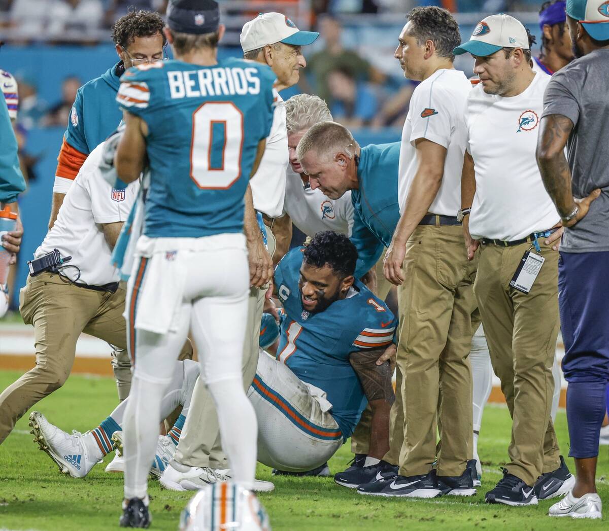 “Scary,” Pierce said. “You could see right away the players’ faces on the field. You could see the sense of urgency from everyone to get Tua some help.”