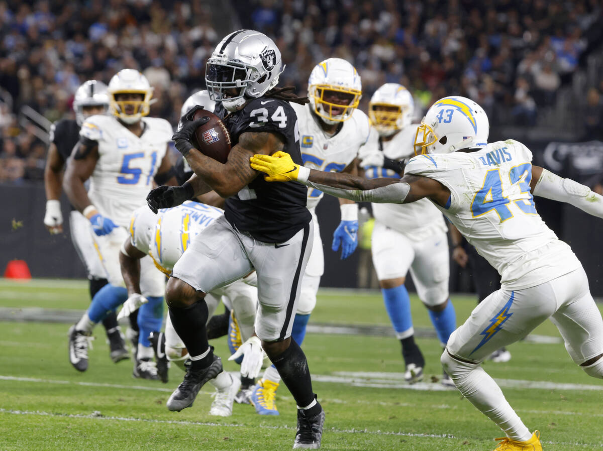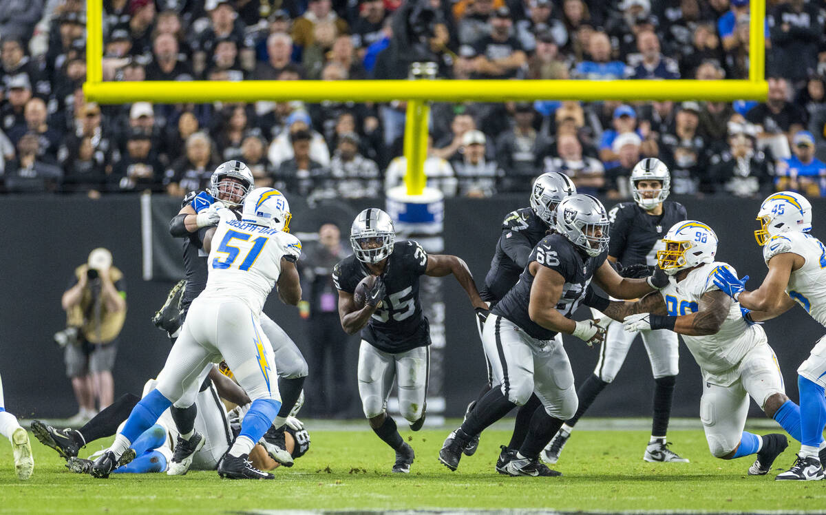 The night belonged to a bunch of younger Raiders being counted on as the future foundation. It started with rookie quarterback Aidan O’Connell, who torched the Chargers for 248 yards and four touchdowns to complete a bit of a full circle for himself. His first start was against the Chargers in Week 4, when he was sacked seven times, fumbled three times and threw an interception.