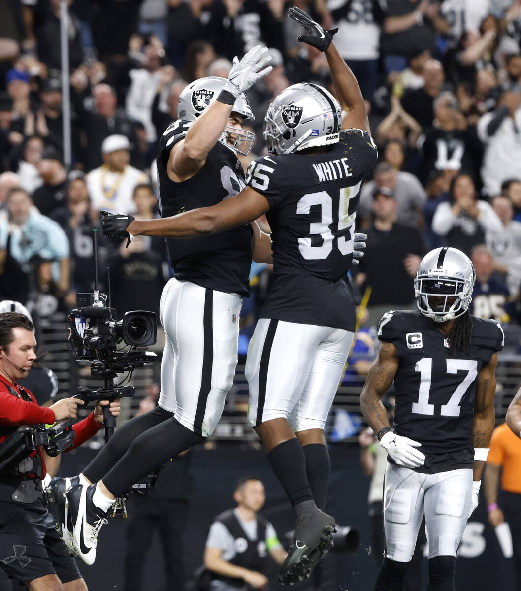 White, filling in for the injured Josh Jacobs, scored his first career touchdown and picked up 69 yards on 17 carries. The second-year running back set career highs in yards and carries in his first extensive action.