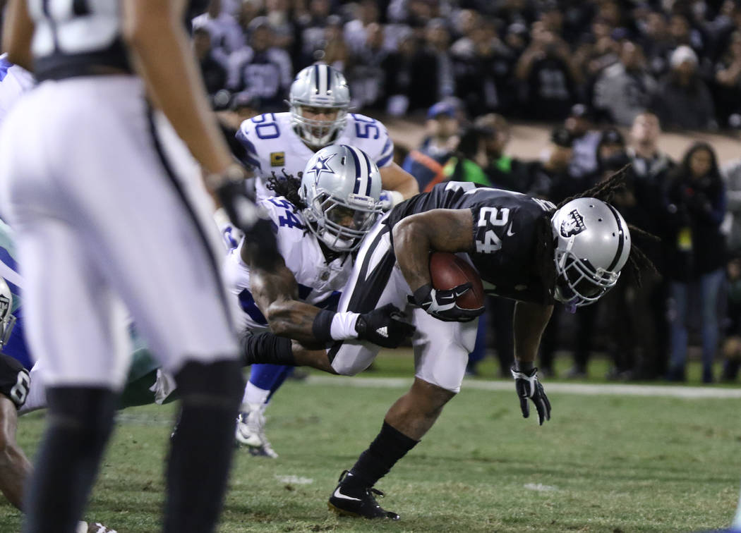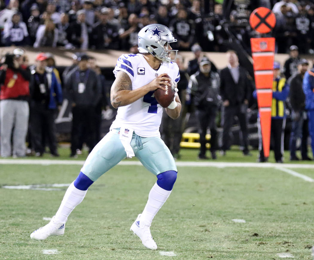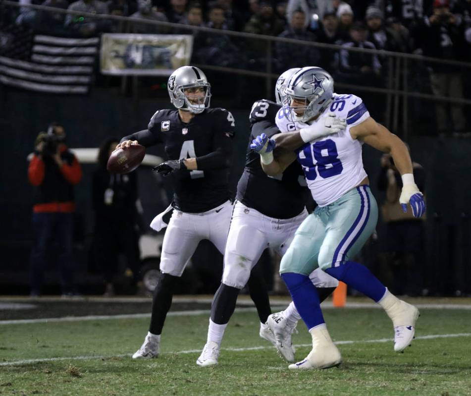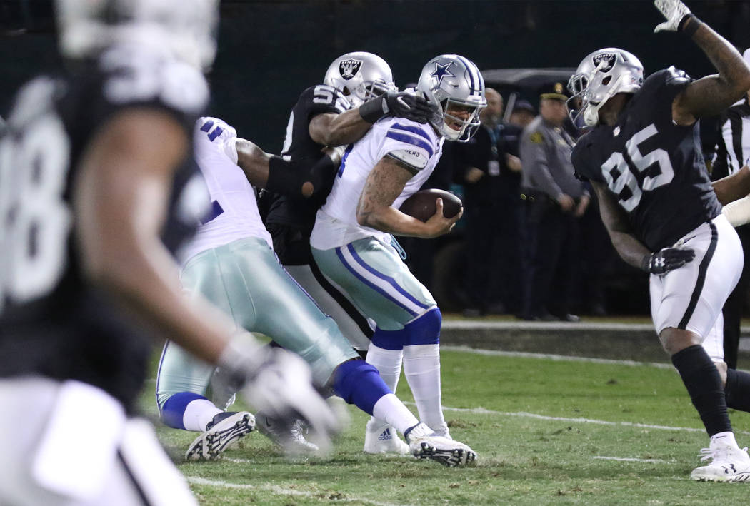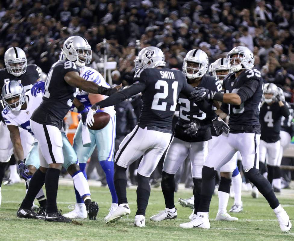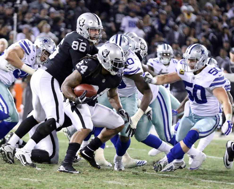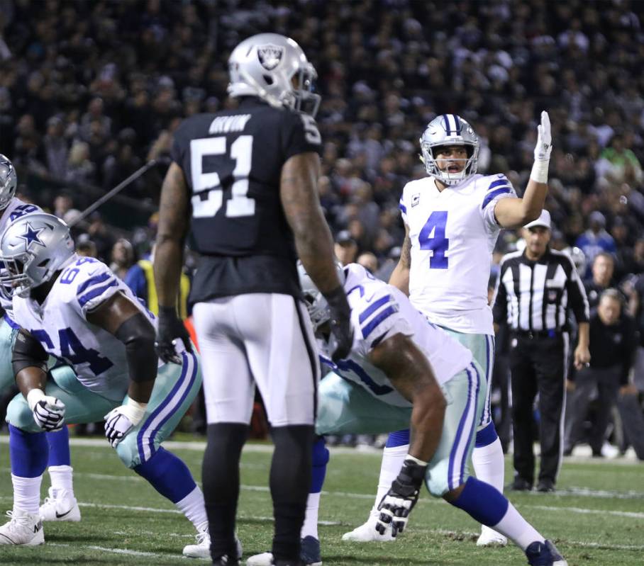 OAKLAND, Calif. — A thin white index card, small enough to fit into a pocket, light enough to waltz into the air from a faint breeze, was held over a football as 55,372 fans fixated on the drama unfolding. Raiders players and coaches screamed toward the paper. Dallas Cowboys players and coaches hollered, too. A lengthy conversation between officials followed.