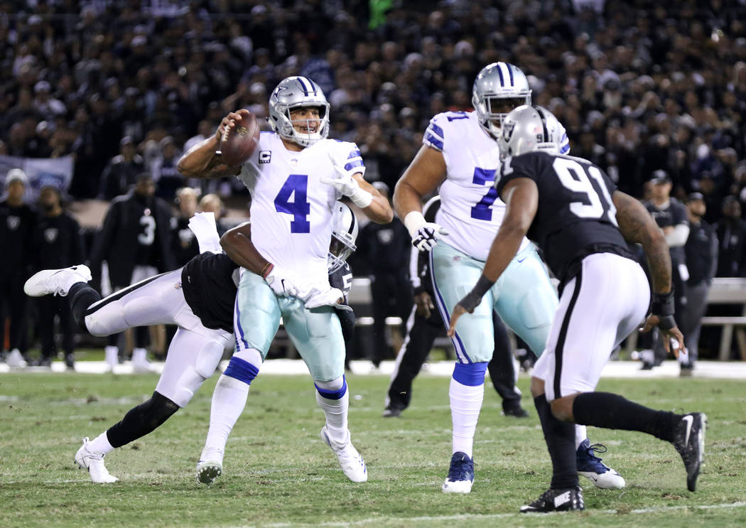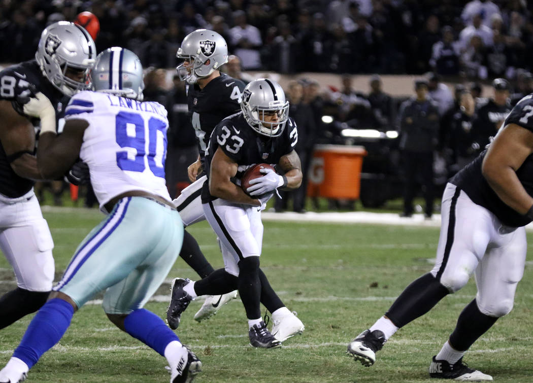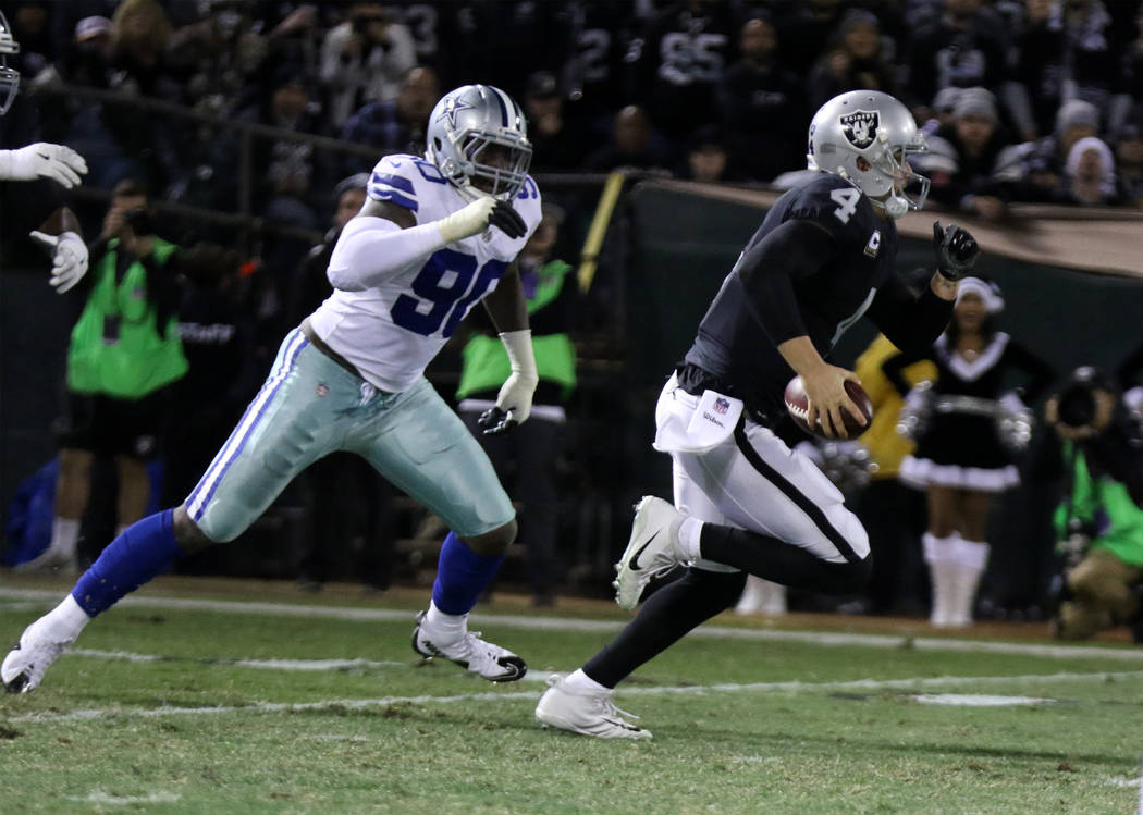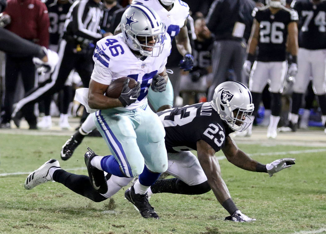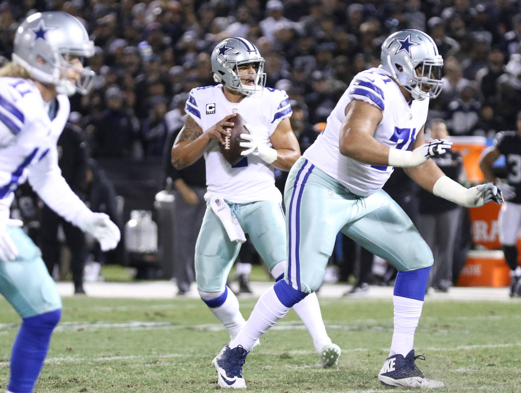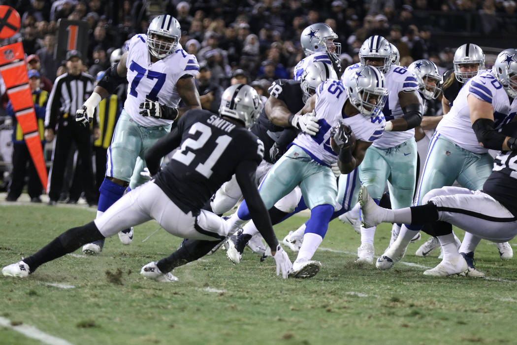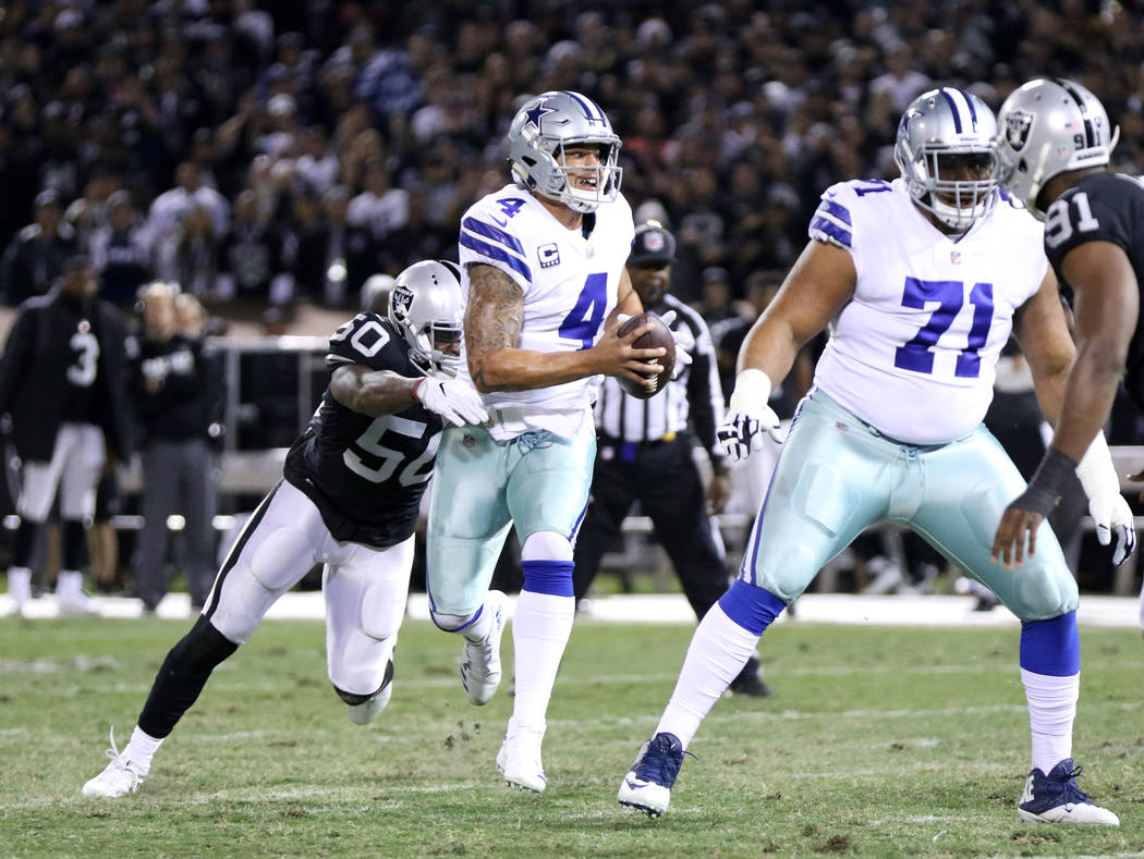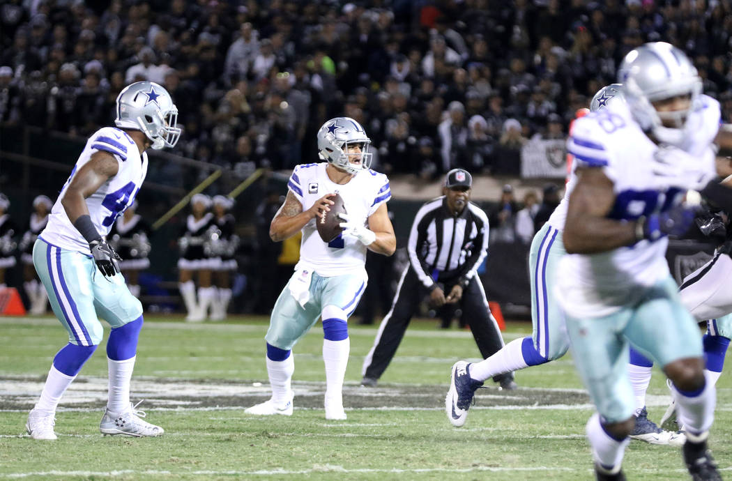 OAKLAND, Calif. — A thin white index card, small enough to fit into a pocket, light enough to waltz into the air from a faint breeze, was held over a football as 55,372 fans fixated on the drama unfolding. Raiders players and coaches screamed toward the paper. Dallas Cowboys players and coaches hollered, too. A lengthy conversation between officials followed.