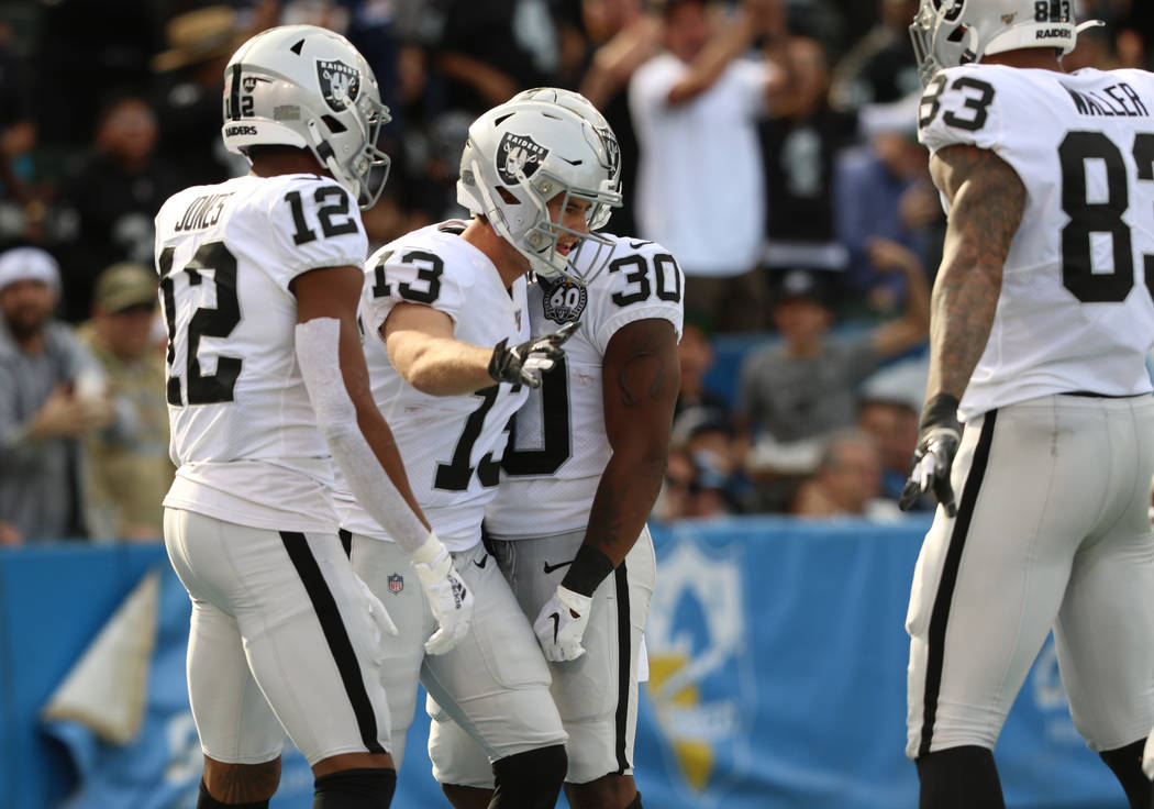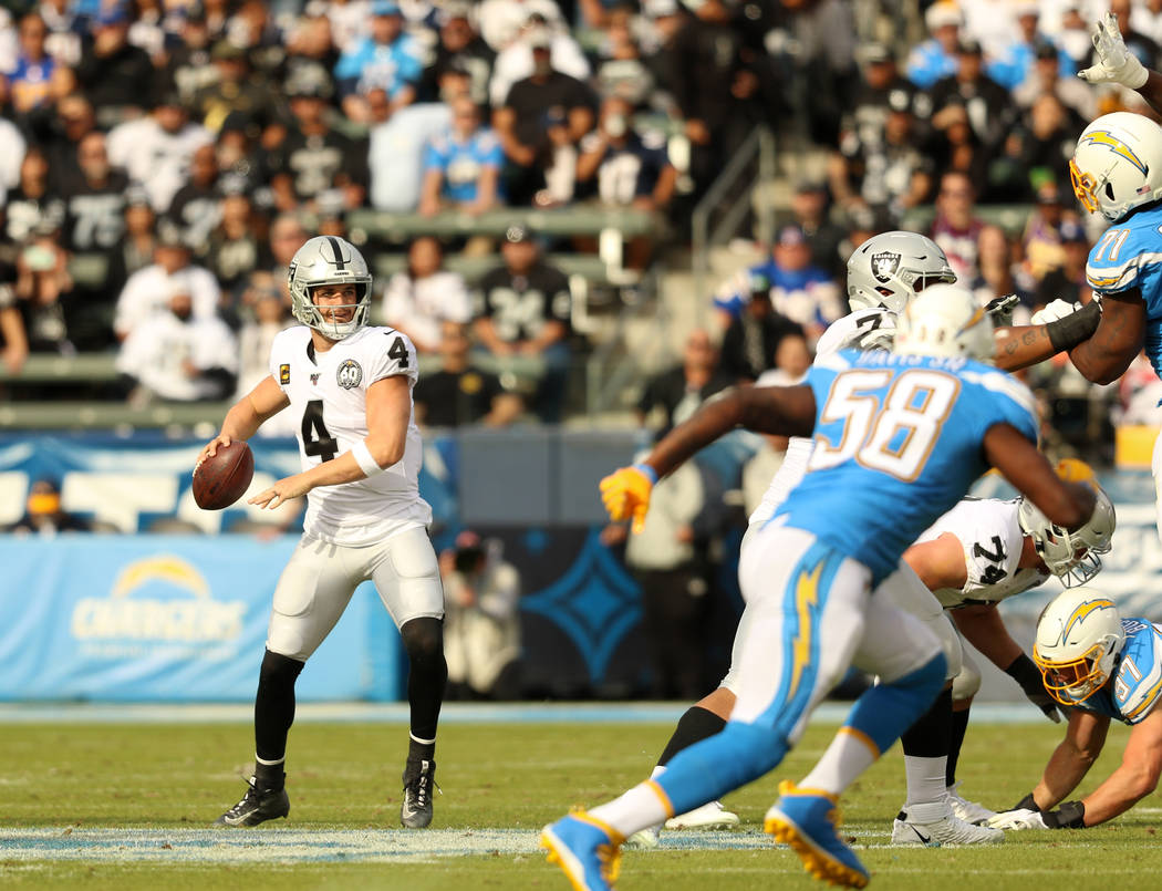 “”When I came around the corner, obviously I went through my progression and I was like, oh, shoot, I can run it in,” Carr said. On the play, Carr said if Chargers safety Derwin James had come up to stop him, he “would have dumped it over the top.” When James did not, he ran it in.
