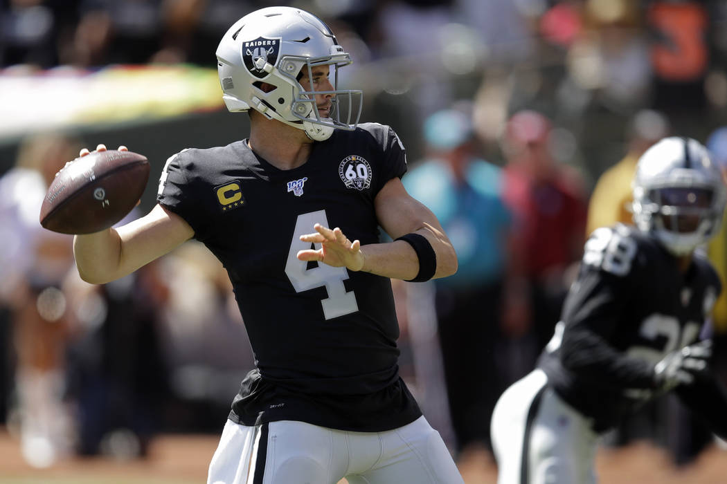 The Raiders’ quarterback has been up-and-down to start the season, throwing for 699 yards with four touchdowns and three interceptions. He is completing 73.5 percent of his passes, but the offense has struggled to generate points.