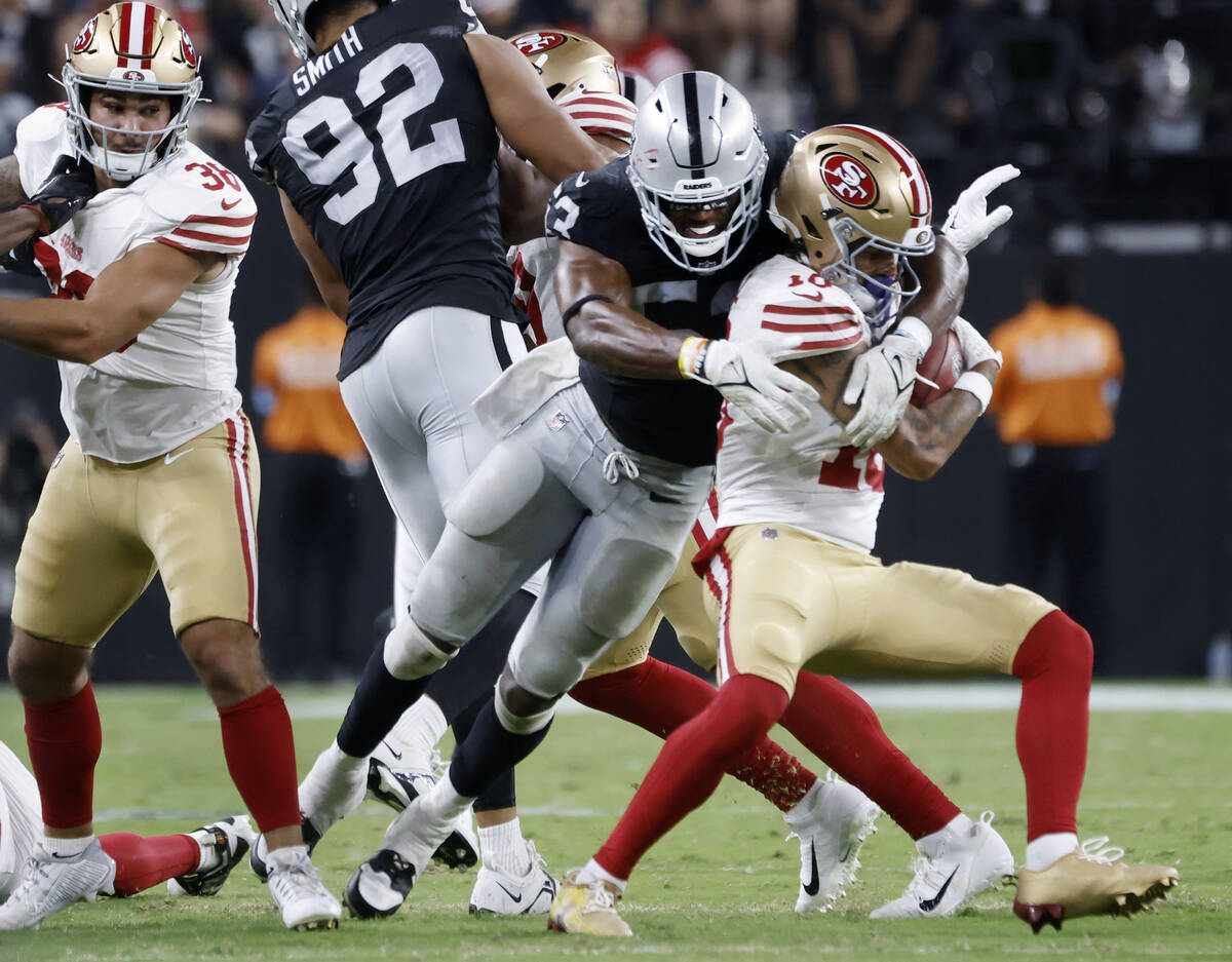 Veteran Brandon Facyson was a question mark after missing more than three weeks of camp with an undisclosed injury. He was released Thursday. The team wanted more options behind starters Nate Hobbs, Jack Jones and Jakorian Bennett besides rookies M.J. Devonshire and Decamerion Richardson. Devonshire made the initial 53-man roster but was waived and added to the practice squad Thursday.