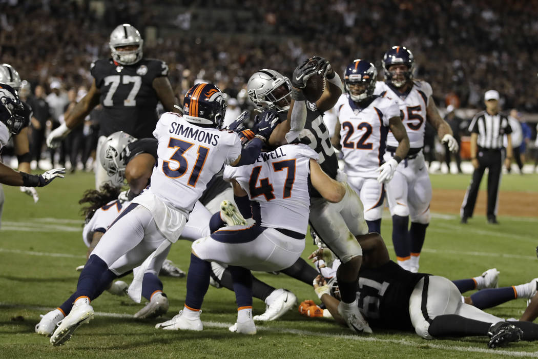 With a 14-6 lead, the Raiders got back on the board with the help of another big-time Williams catch in the fourth quarter. On third and 6, Carr found him for a 24-yard gain. Williams had to reach up, secure the pass and then brace for impact — but did each successfully for a first down at the Broncos 4.