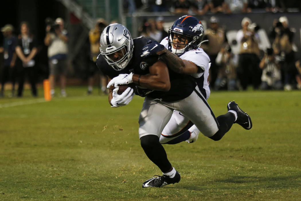 OAKLAND — After a tumultuous week, the Raiders were able to put Antonio Brown in the past and come away with a 24-16 victory over the Denver Broncos on “Monday Night Football.”