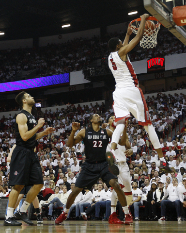 UNLV’s Khem Birch missed two free throws, and Winston Shepard hit a 3-pointer from the left wing as San Diego State took a 67-62 lead at the 2:30 mark.