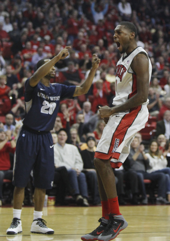 Deville Smith has been answering lately, scoring 17 points in the Rebels’ victory at New Mexico last week and doing a lot of the same things to Utah State’s defense. He shot over the zone and dribble penetrated to hit mid-range shots and make plays for teammates.