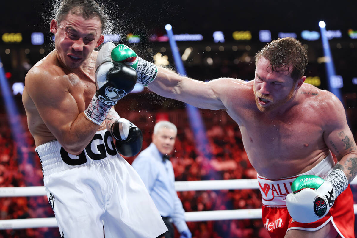 ■ Action Photo, by Erik Verduzco of Saul “Canelo” Alvarez connecting on a punch against Gennadiy “GGG” Golovkin, in the fifth round of a super middleweight title bout at T-Mobile Arena.