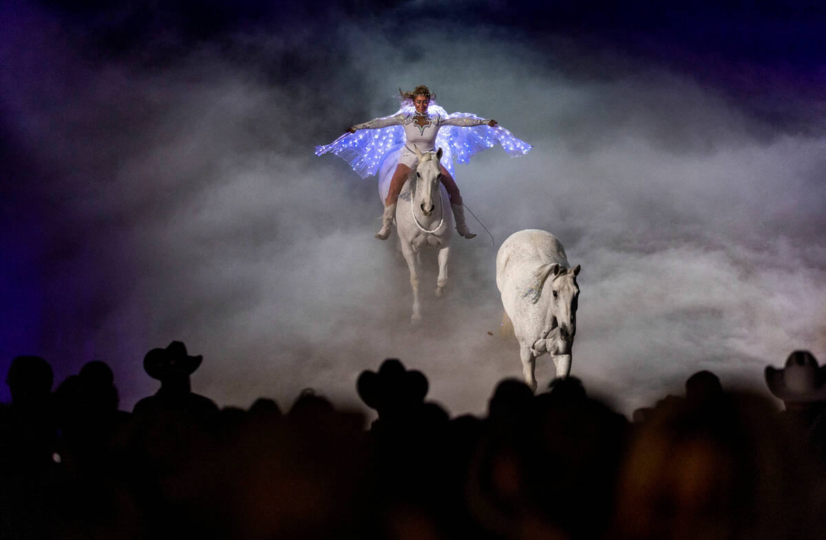 ■ Feature Photo, by L.E. Baskow of Trick and Roman rider Jessica Fowlkes following a horse about a smoke-filled ring in the National Finals Rodeo at the Thomas & Mack Center.