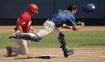 With one out, Paul Sewald walked and Devin Flynn was hit by a pitch. Johnny Field, the team's No. 9 batter, then drove a ball to deep center. It was just out of Garvey's reach as he crashed into the fence, and Sewald scored the tying run.