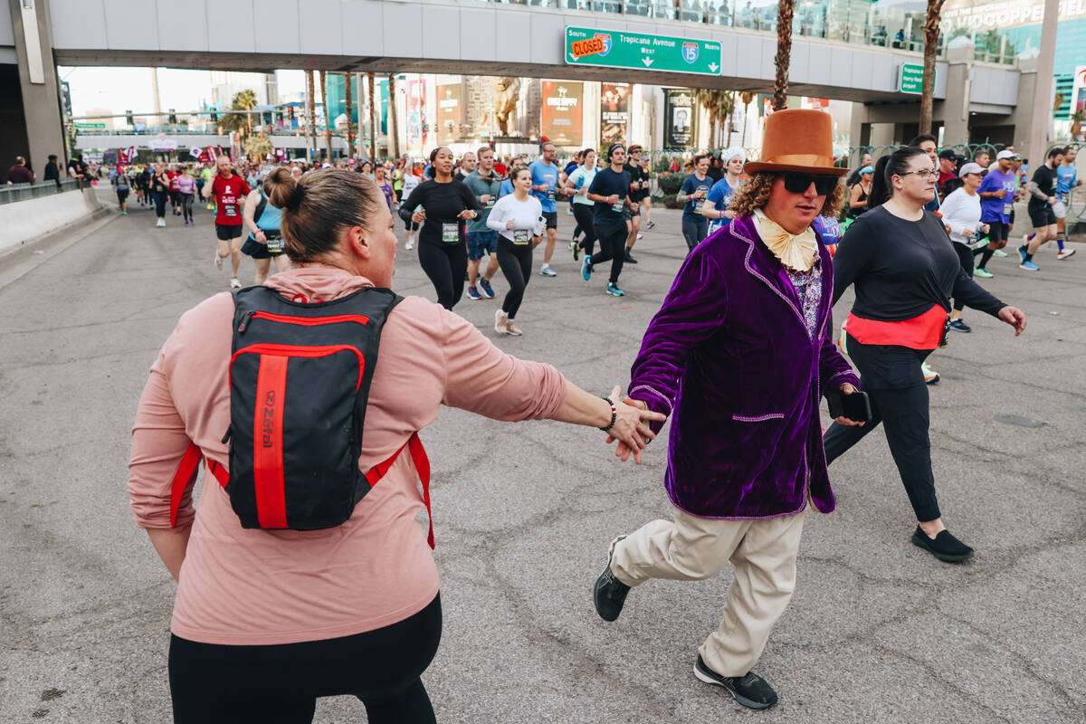 The elite runner enjoyed the festive atmosphere on the Strip, where 21,000 runners and walkers competed in the half-marathon and 10-kilometer races. Both events started at New York-New York and finished at the Bellagio.