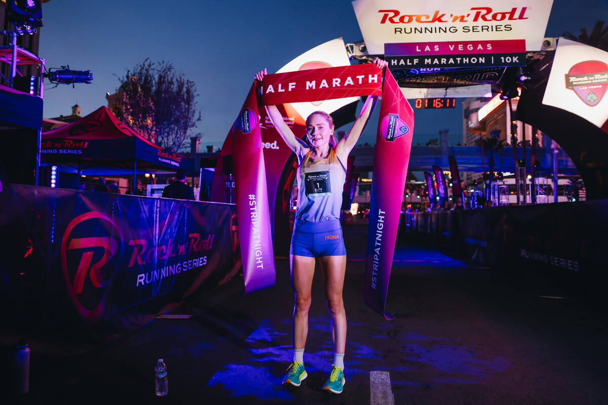 Alice Wright won the women’s half-marathon in 1:14:10 in her first Rock ‘n’ Roll Las Vegas race.