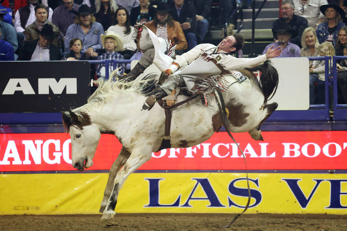 Thurston won the gold buckle by riding Andrew Rodeo’s All or Nothing for 89.5 points to share the go-round win and also clinch first place in the NFR average — a contestant’s aggregate score over the 10 rounds that pays a $74,150 bonus to the winner.