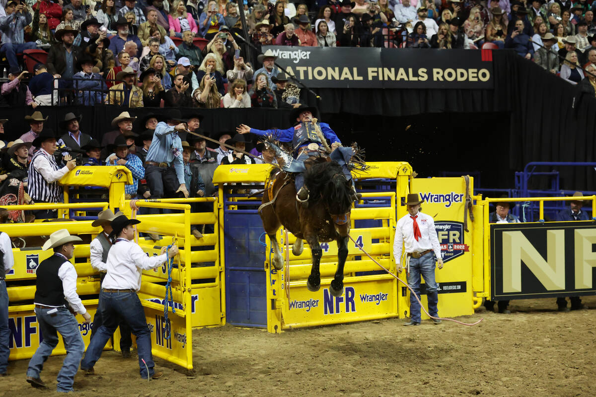 The 2022 saddle bronc championship wasn’t decided until the last one.